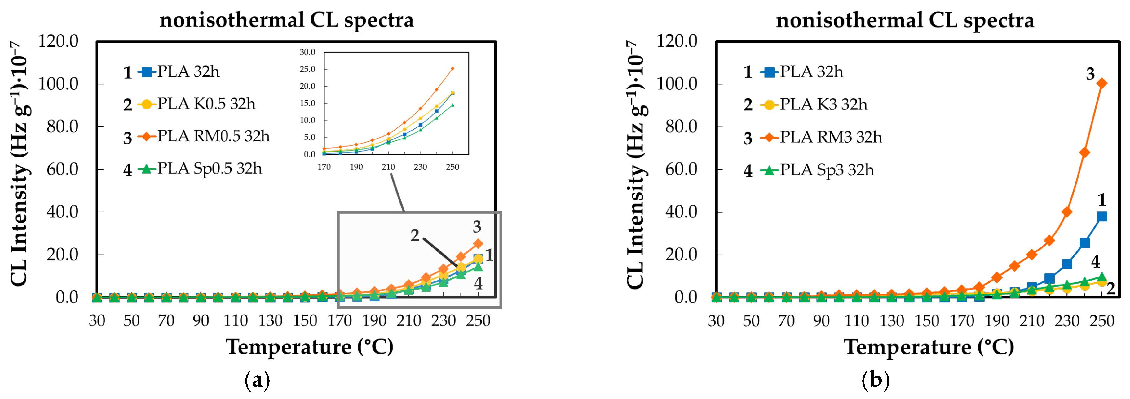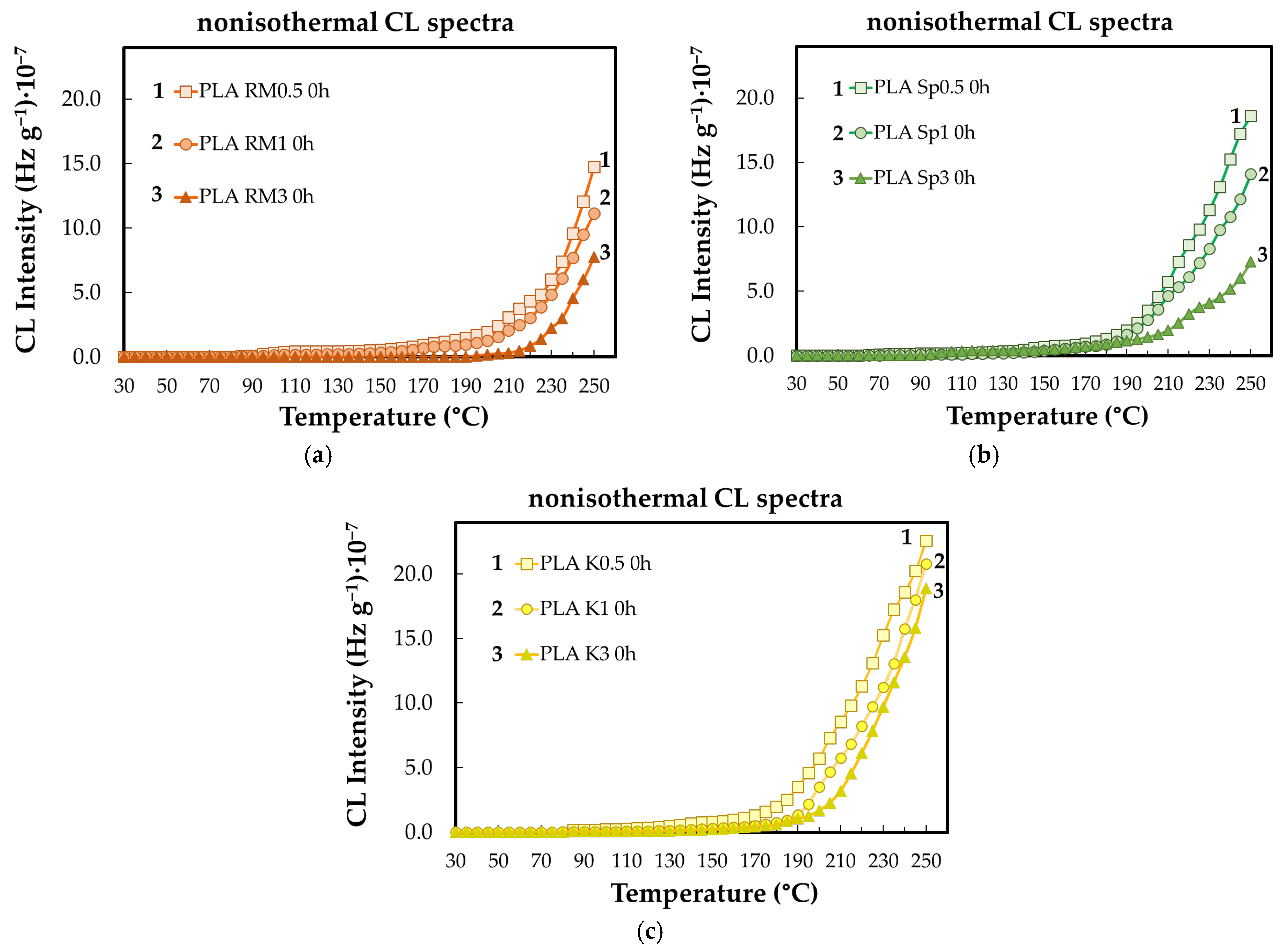 3.2. Nonisothermal CL Measurements