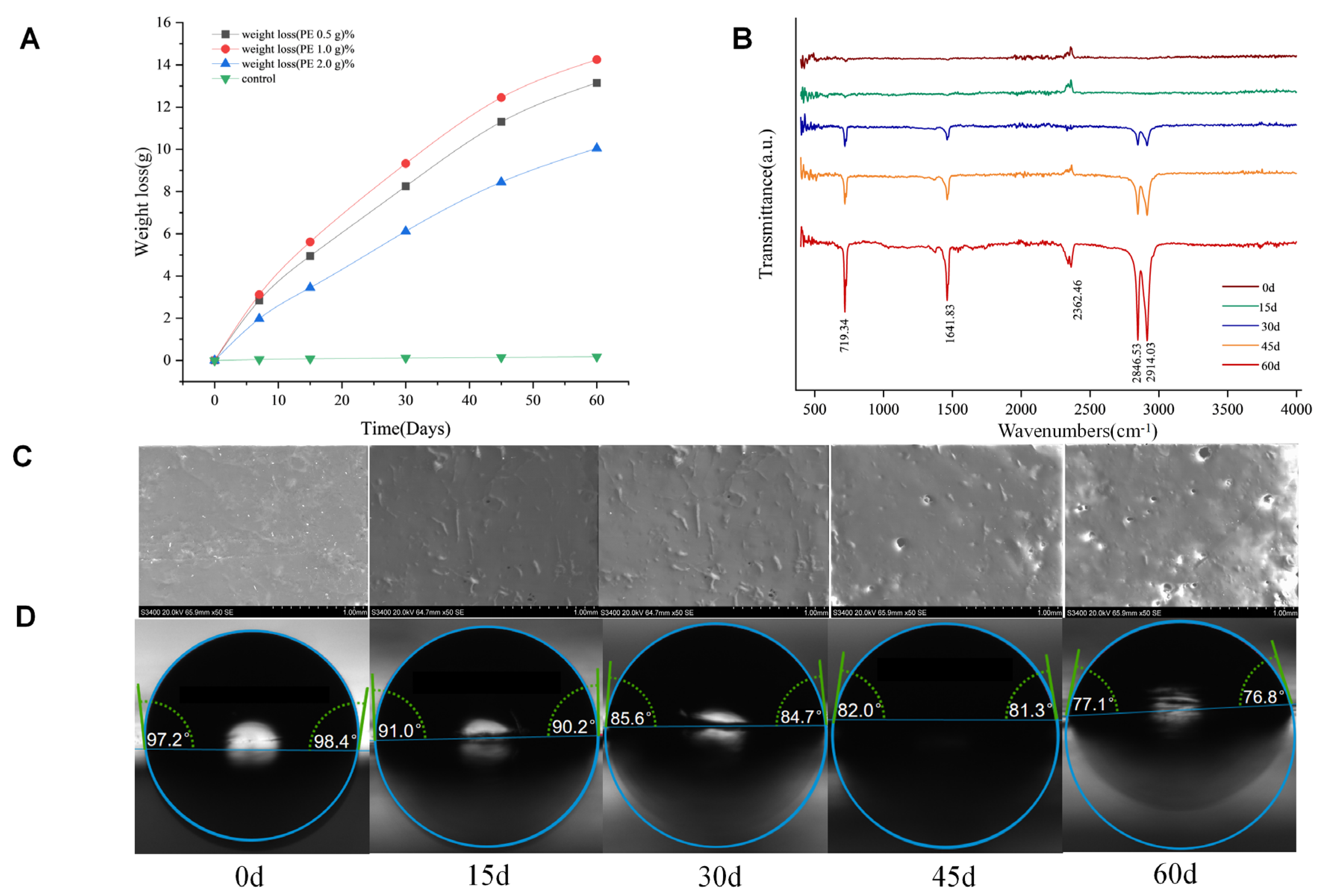 3.3.3. Evolution of Functional Groups on PE Film Surface During Microbial Degradation