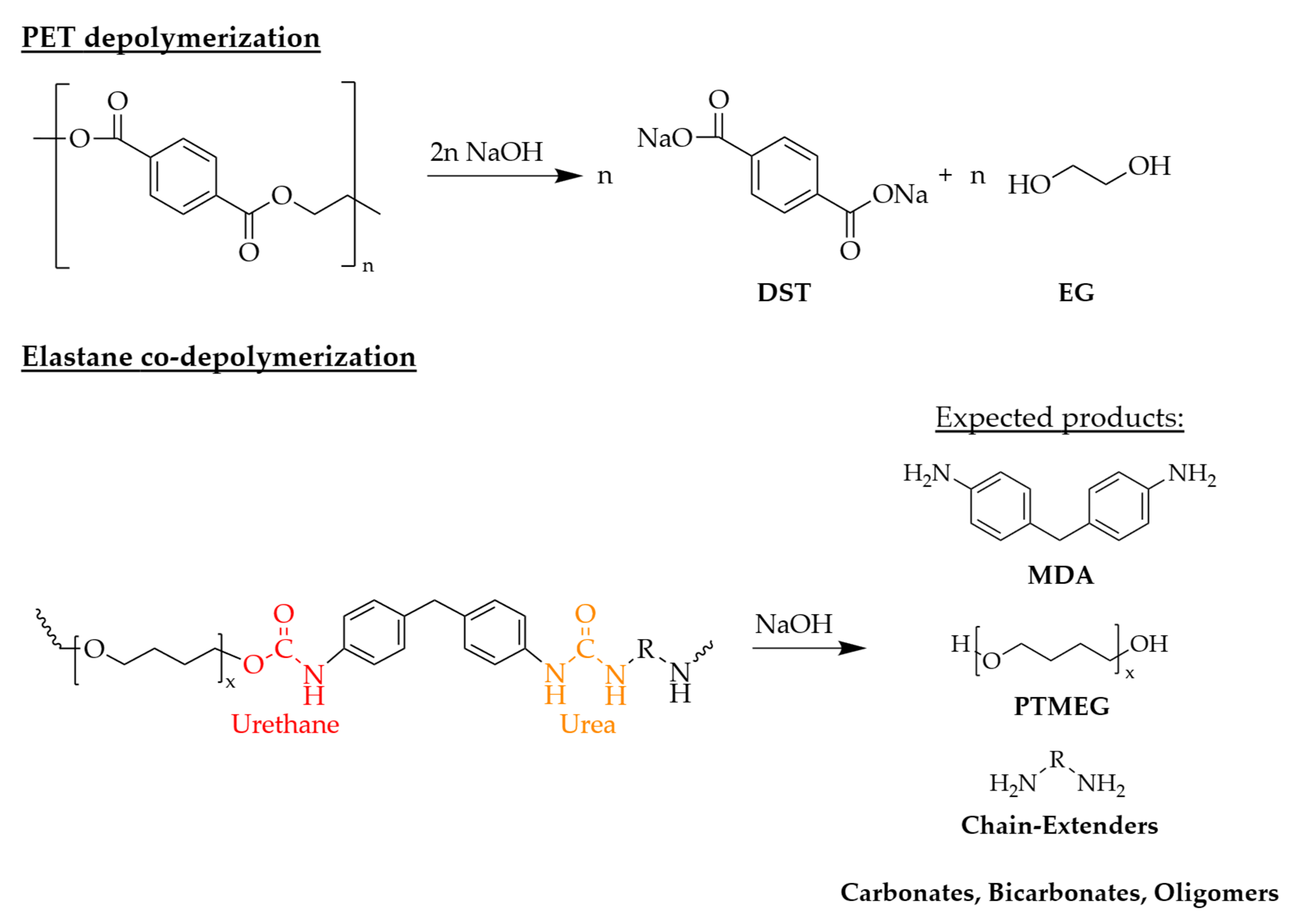 6]. Although PET depolymerization mechanisms in alkaline media are well understood, the behavior of elastane under such conditions has received little systematic investigation.