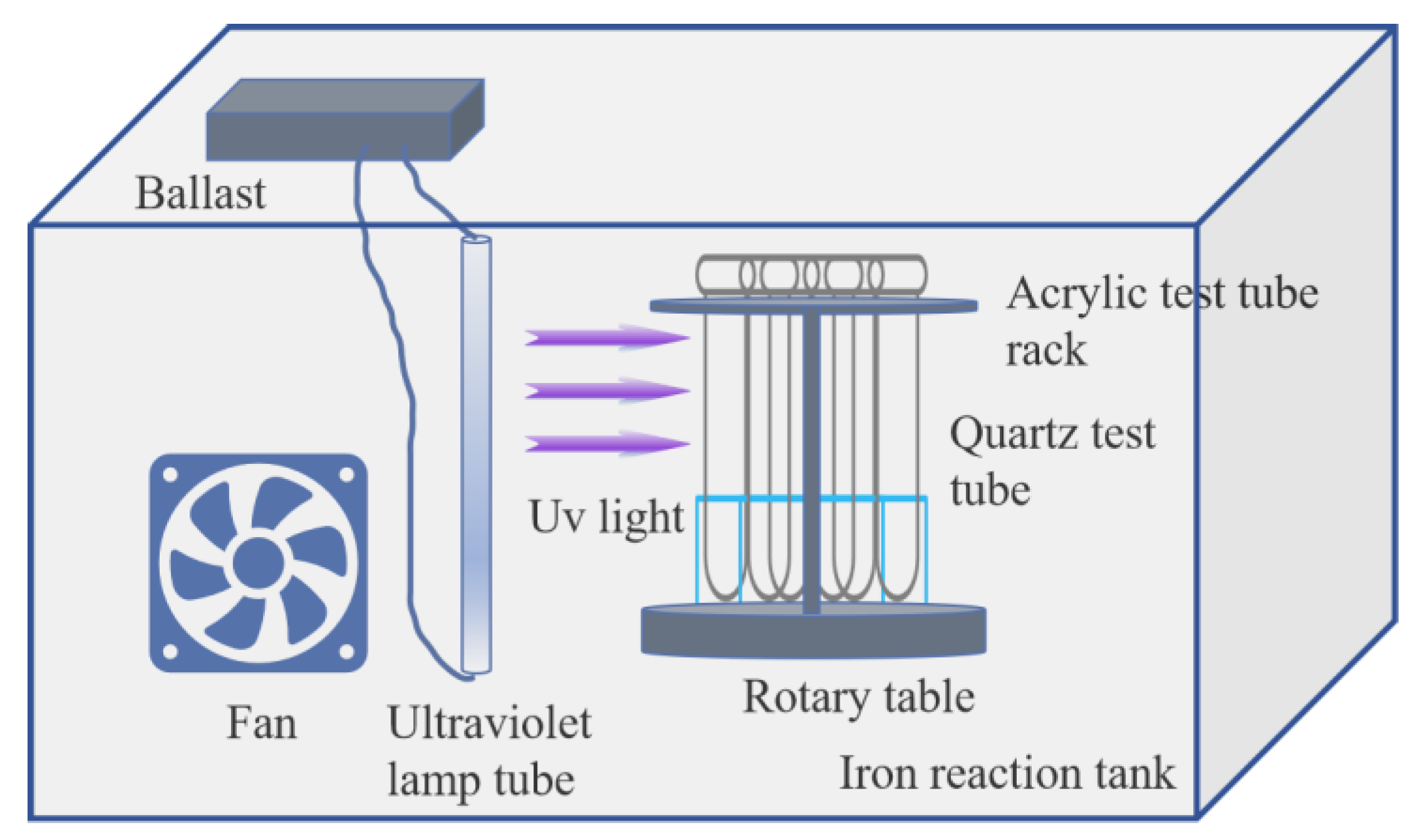 The synthesis is initiated by ultraviolet light tubes with a power of 300 W. Both the duration and power of light exposure can affect the level of energy transferred. Therefore, the duration of light exposure also directly impacts the generation of branch products.
