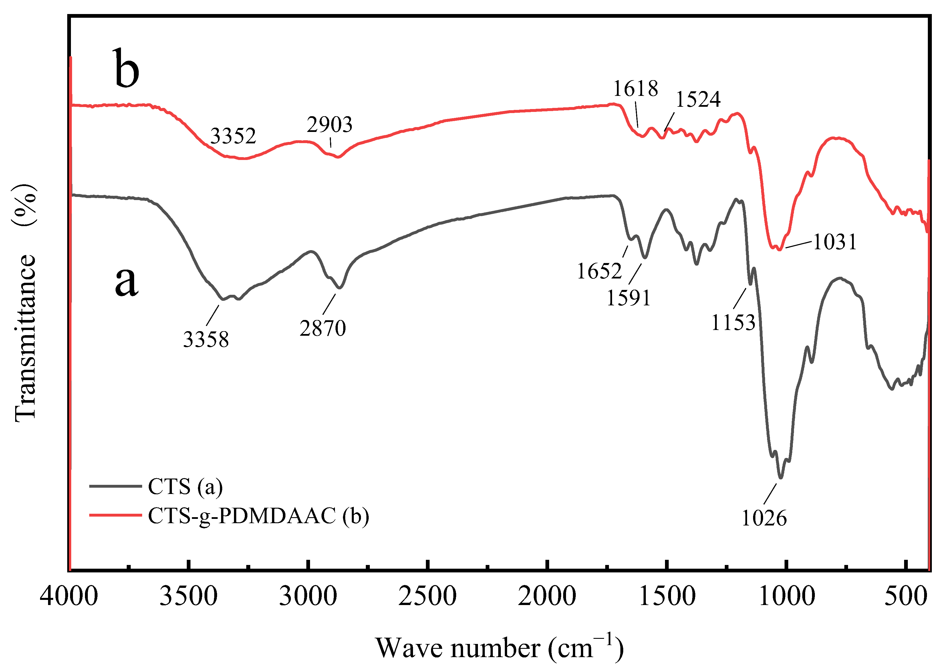2.4. Characterization Method of CTS-g-PDMDAAC