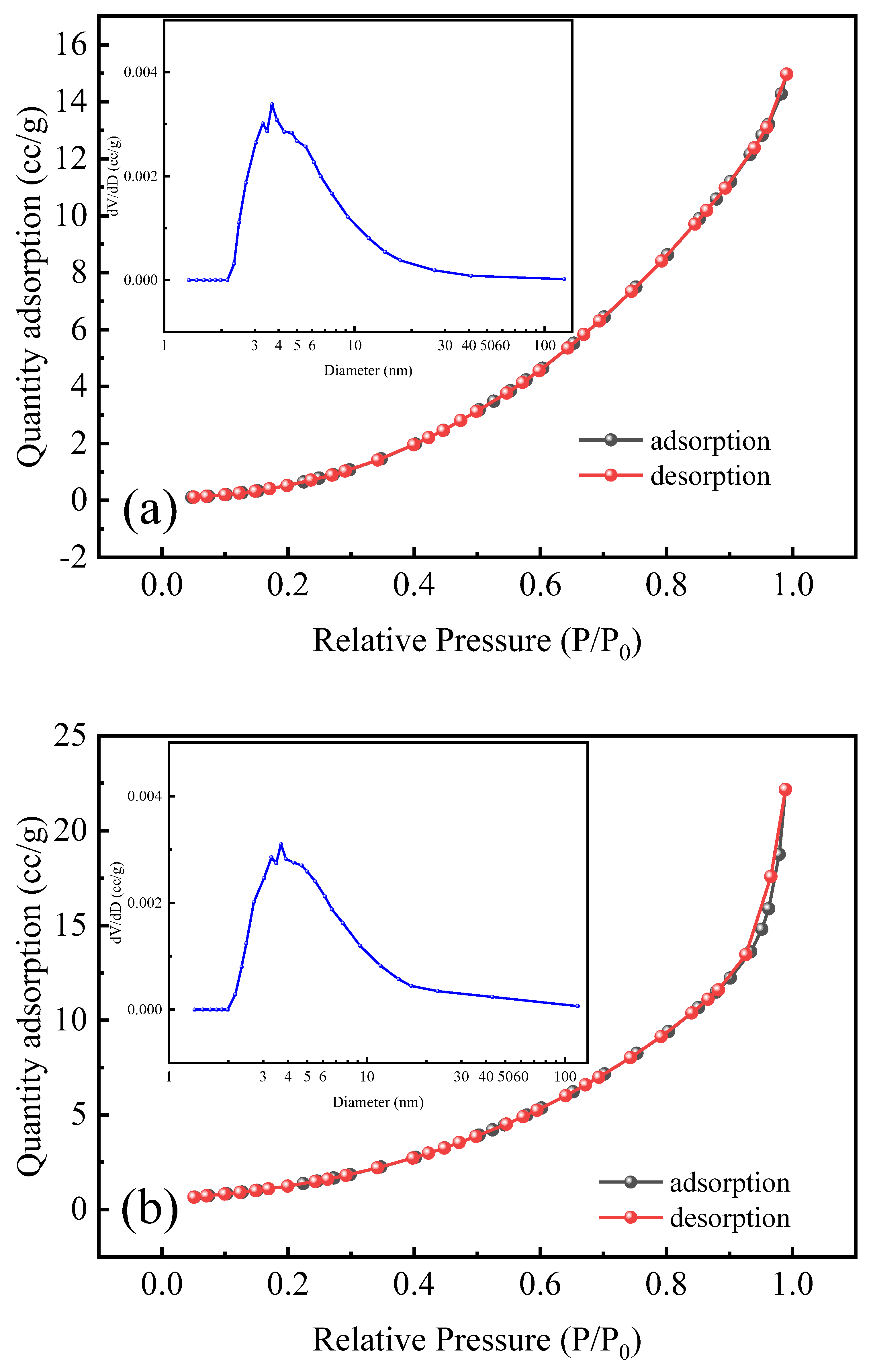 N2 adsorption–desorption isotherms and pore size distributions of CTS (a) and CTS-g-PDMDAAC (b).