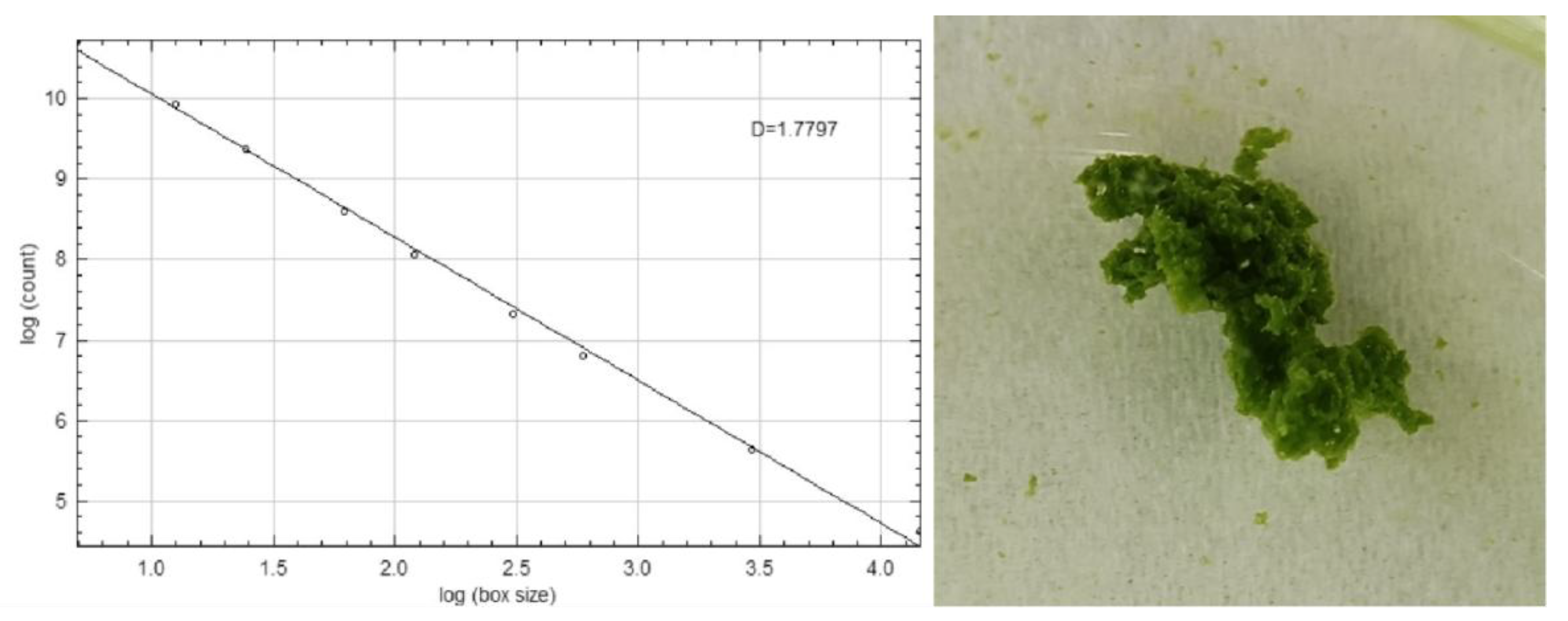 Fractal dimension analysis of Chlorella floc and magnification of floc.