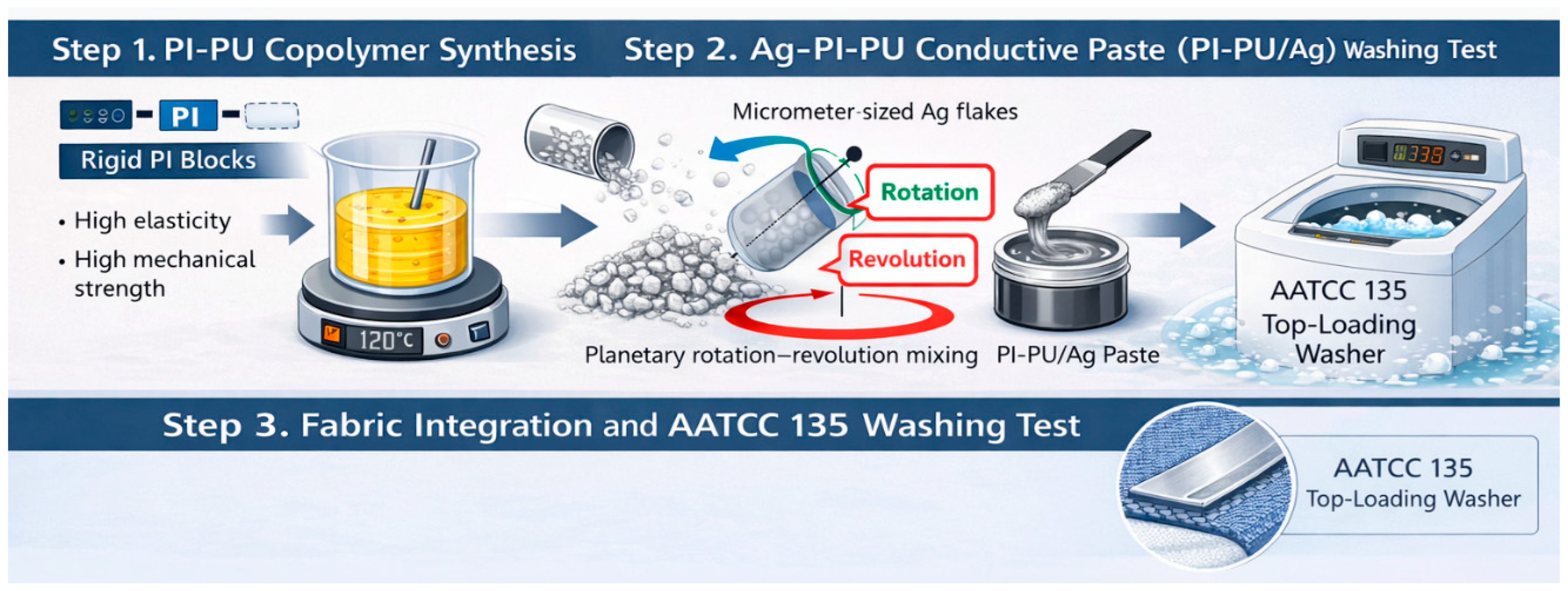 APA StyleChou, S.-C., Cheng, Y.-Y., Chen, J.-K., & Huang, W. H.-S. (2026). Copolymer Engineering of Elastic–Rigid Elastomers for Wash-Durable Conductive Pastes in Wearable Textile Electronics. Polymers, 18(5), 609. https://doi.org/10.3390/polym18050609