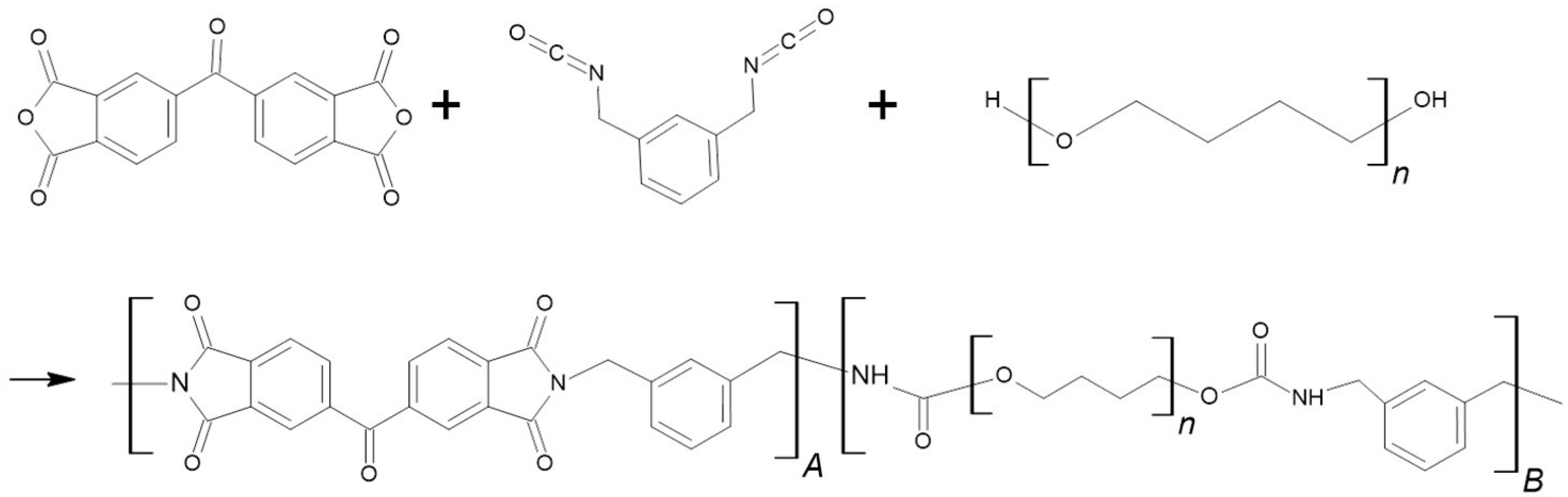 - Jeon, J.Y.; Tak, T.M. Synthesis and characterization of block copoly(urethane-imide). J. Appl. Polym. Sci. 1996, 62, 763–769. [Google Scholar] [CrossRef]