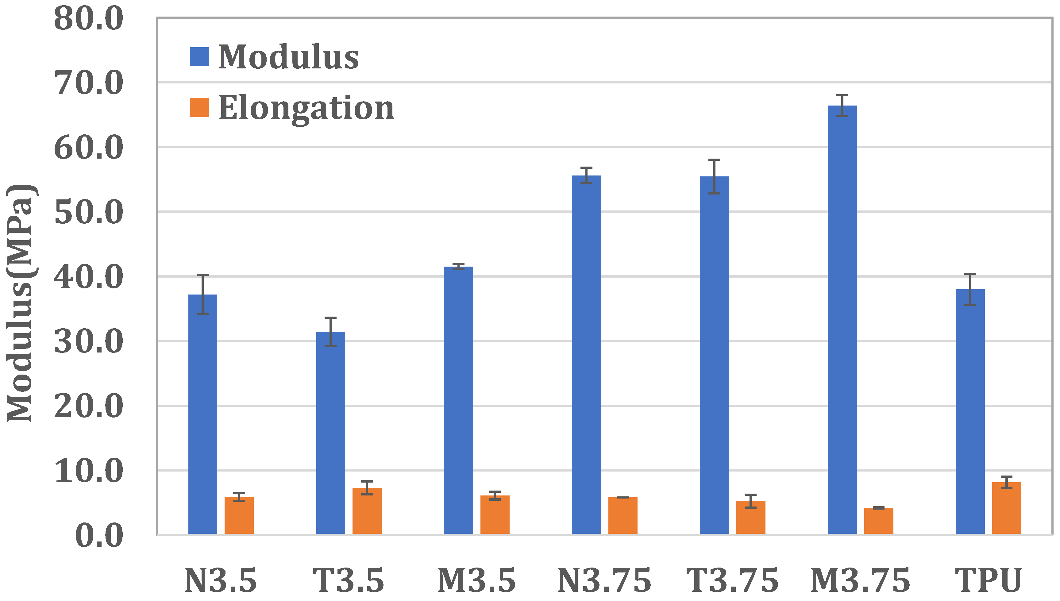 | Specimens | Tensile Strength (MPa) | Young’s Modulus (MPa) | Percent Elongation (%) |