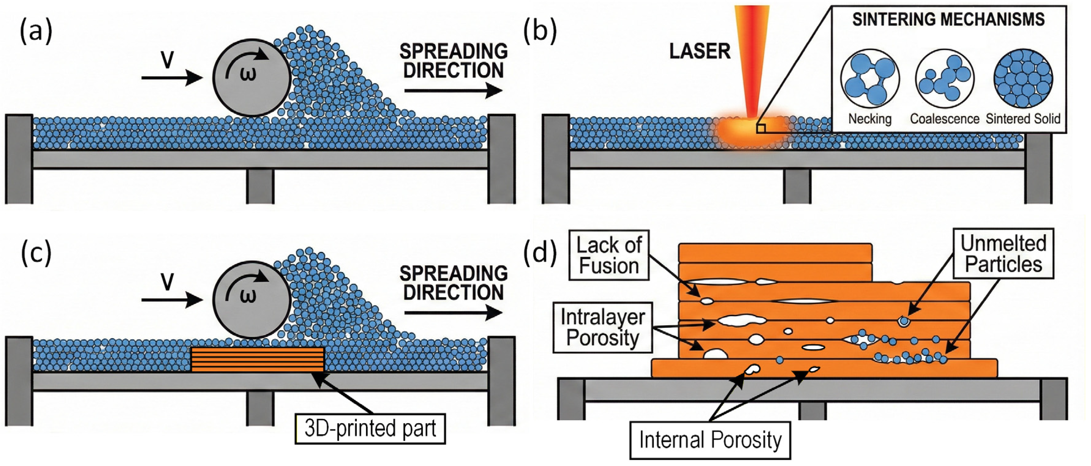 - Choudhury, S.S.; Annabattula, R.K.; Amirthalingam, M. A methodology for the development of functionally graded powder spreading in laser powder bed fusion process using discrete element method. Weld. World 2024, 68, 2259–2269. [Google Scholar] [CrossRef]