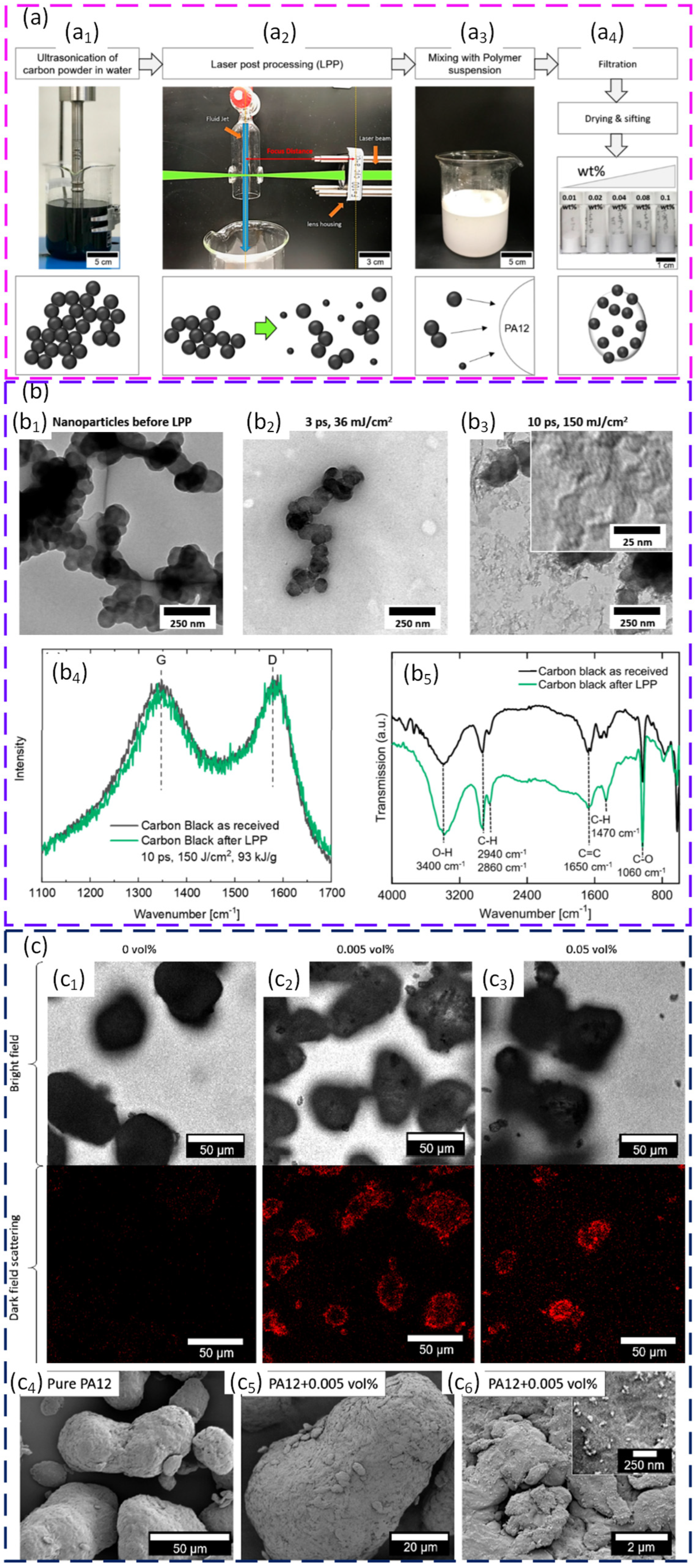 - Sommereyns, A.; Leupold, S.; Rudlof, F.; Willeke, M.; Ghosh, A.; Ohannessian, B.; Merwin, D.; Elahi, R.; Barcikowski, S.; Vogel, N.; et al. Light matters: Quantifiable optical interaction between near-infrared laser radiation and nano-additivated polymers in all states of matter present in laser powder bed fusion. Addit. Manuf. 2024, 86, 104211. [Google Scholar] [CrossRef]