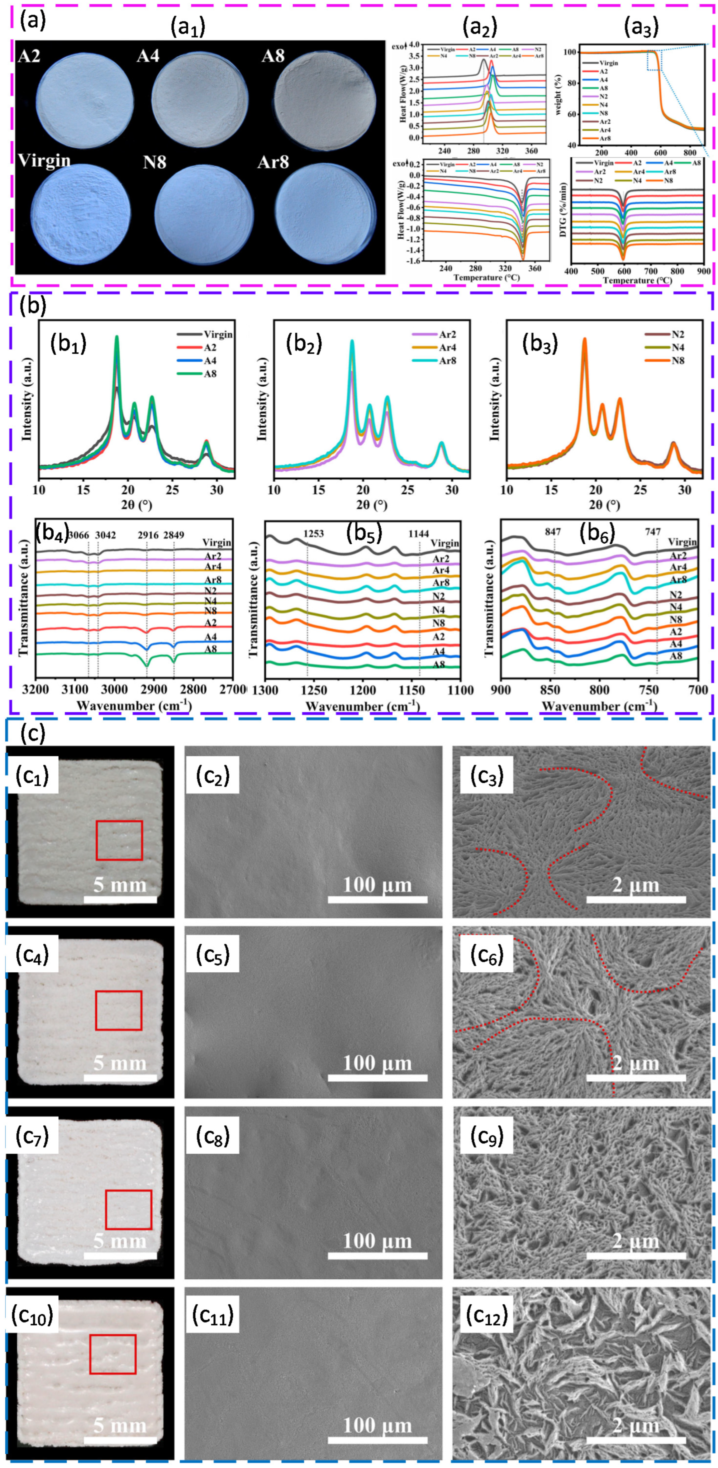- Chen, P.; Wu, H.; Zhu, W.; Yang, L.; Li, Z.; Yan, C.; Wen, S.; Shi, Y. Investigation into the processability, recyclability and crystalline structure of selective laser sintered Polyamide 6 in comparison with Polyamide 12. Polym. Test. 2018, 69, 366–374. [Google Scholar] [CrossRef]