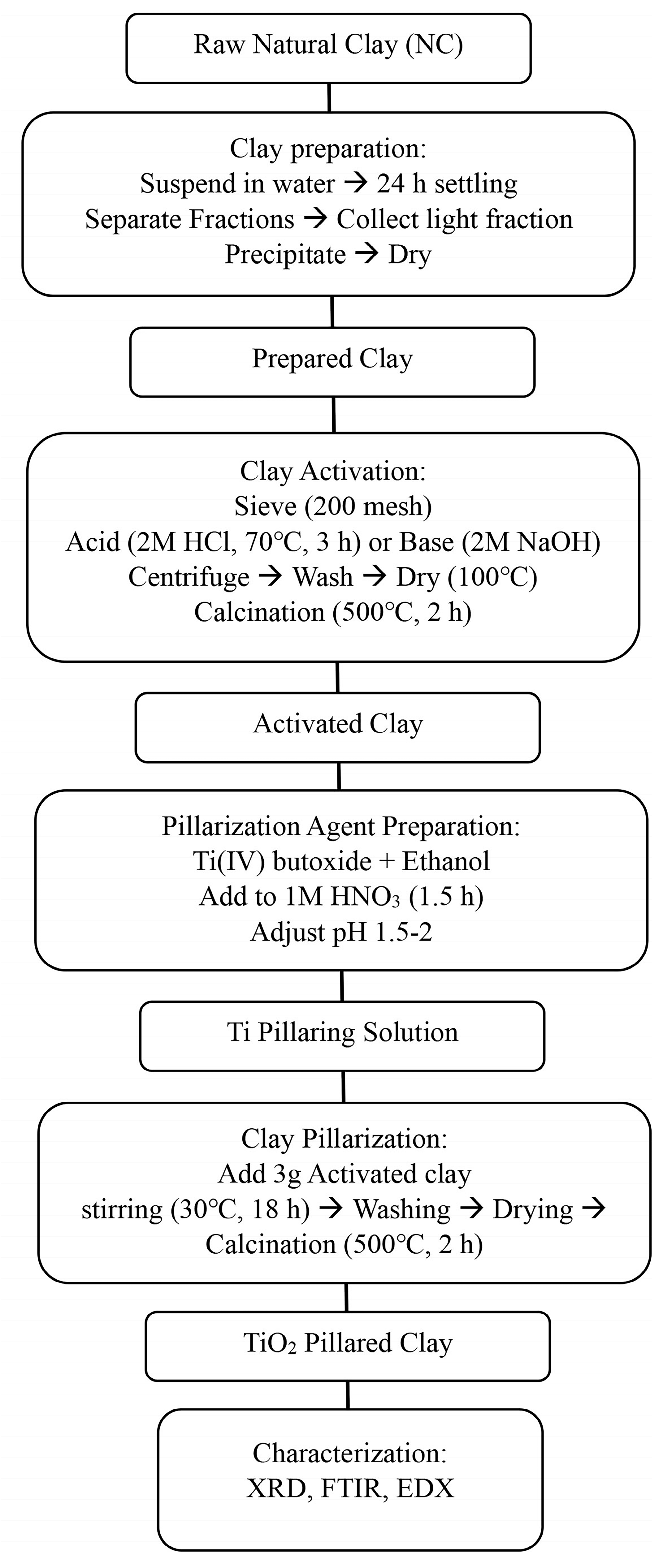 - Janitra, A.A.; Azmiyawati, C.; Darmawan, A. Synthesis of TiO2 pillared clay and its application to the decolourization of crystal violet dyes. In Proceedings of the IOP Conference Series: Materials Science and Engineering, Bristol, UK, 11–15 June 2019; p. 012140. [Google Scholar]