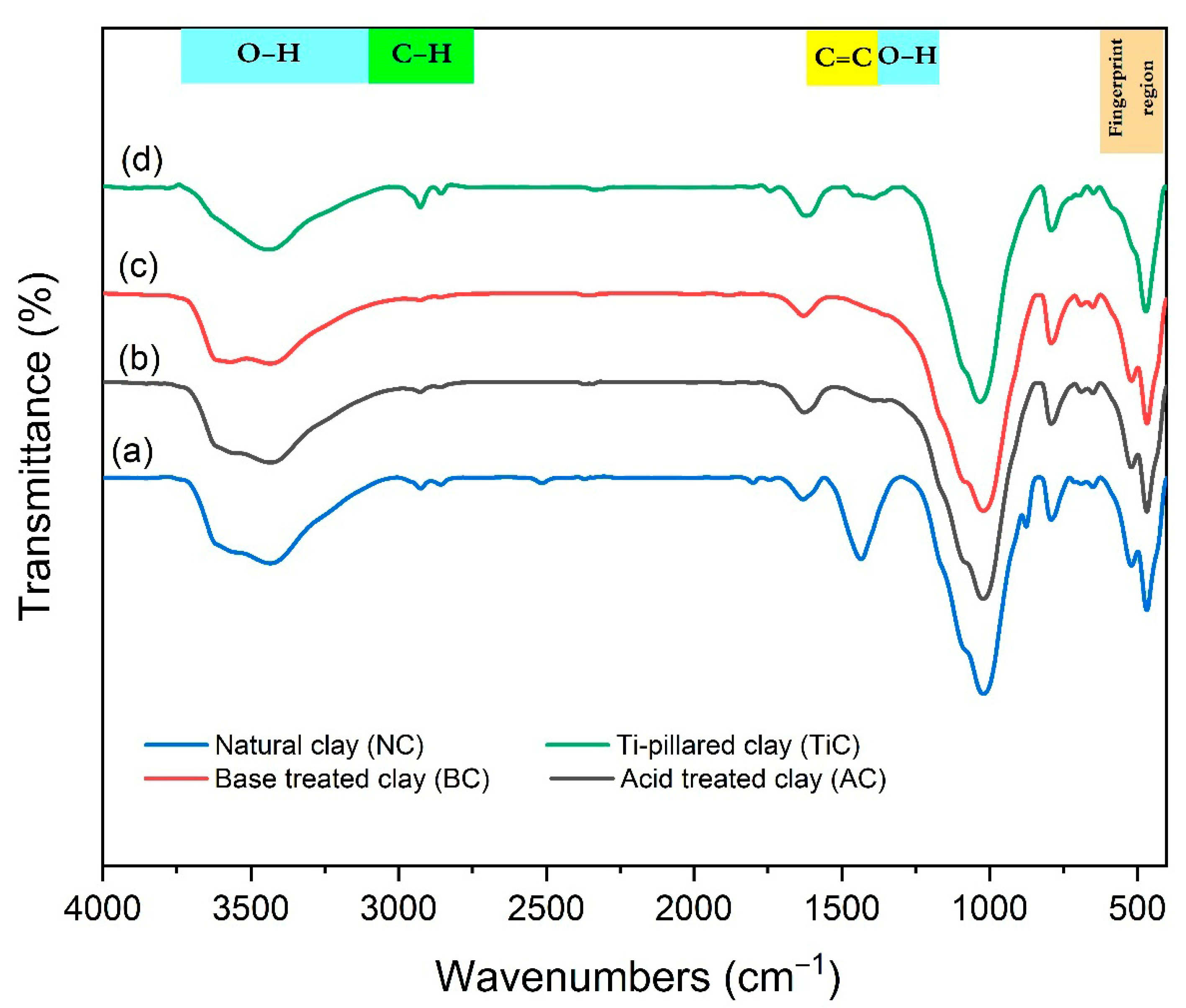 - Zhirong, L.; Uddin, M.A.; Zhanxue, S. FT-IR and XRD analysis of natural Na-bentonite and Cu (II)-loaded Na-bentonite. Spectrochim. Acta Part A Mol. Biomol. Spectrosc. 2011, 79, 1013–1016. [Google Scholar] [CrossRef] [PubMed]