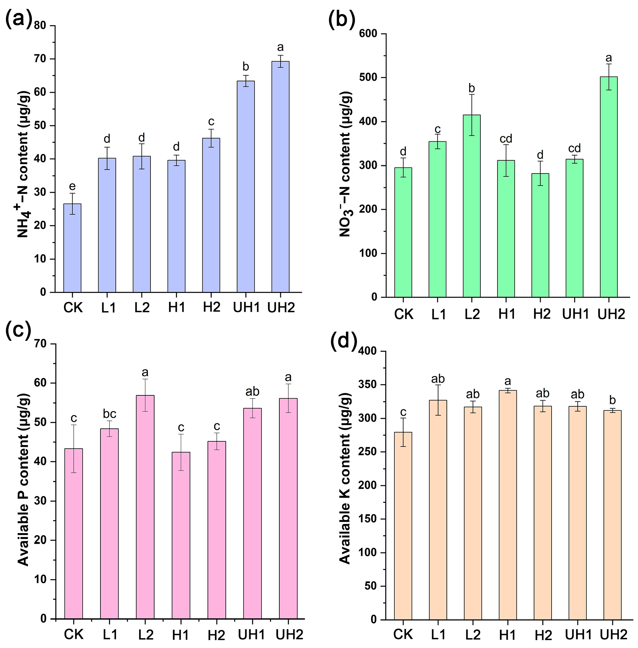 | Treatments | CK | L1 | L2 | H1 | H2 | UH1 | UH2 |