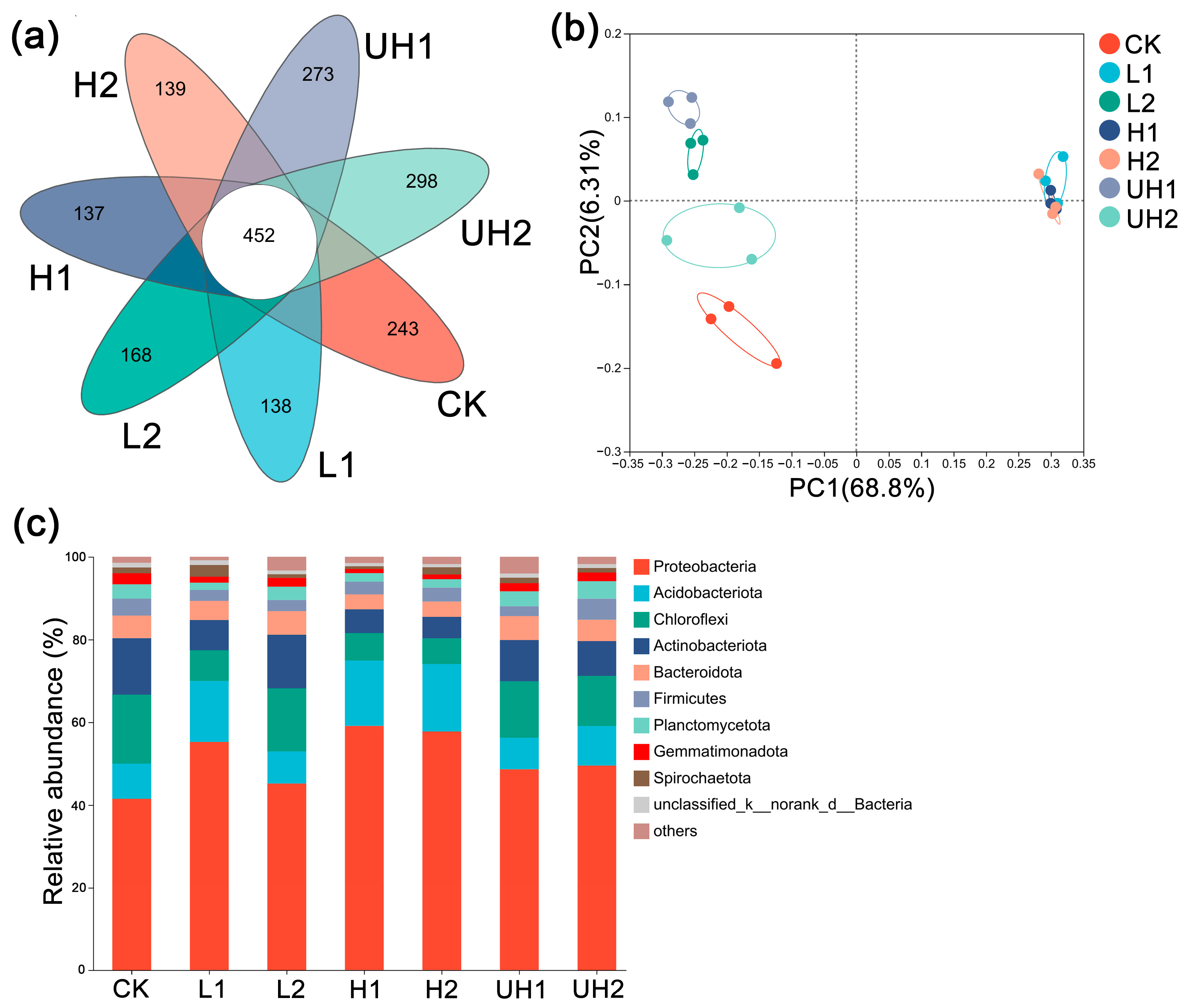 3.6. Similarity Analysis of Soil Bacterial Communities