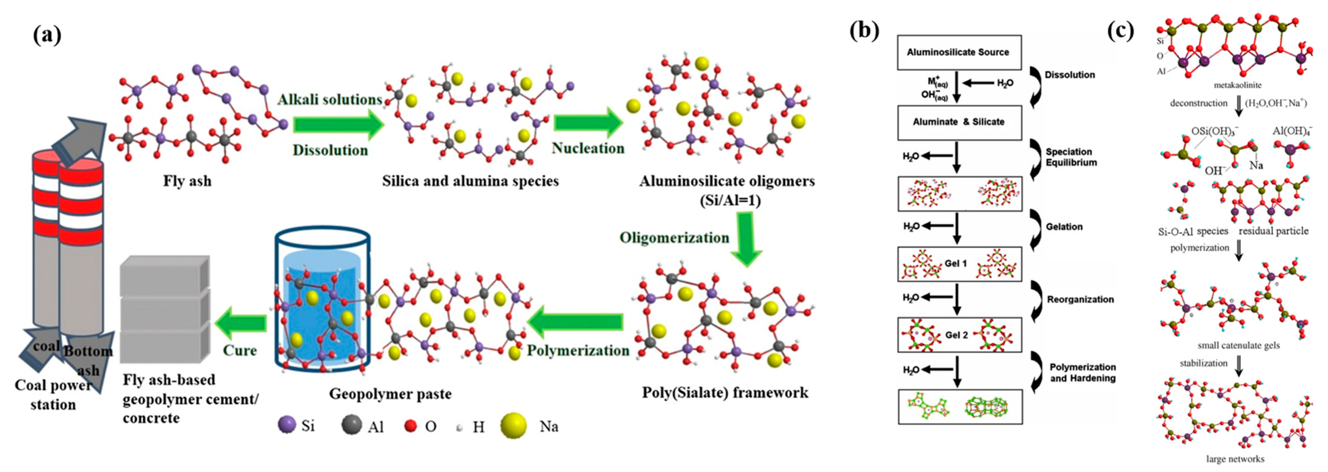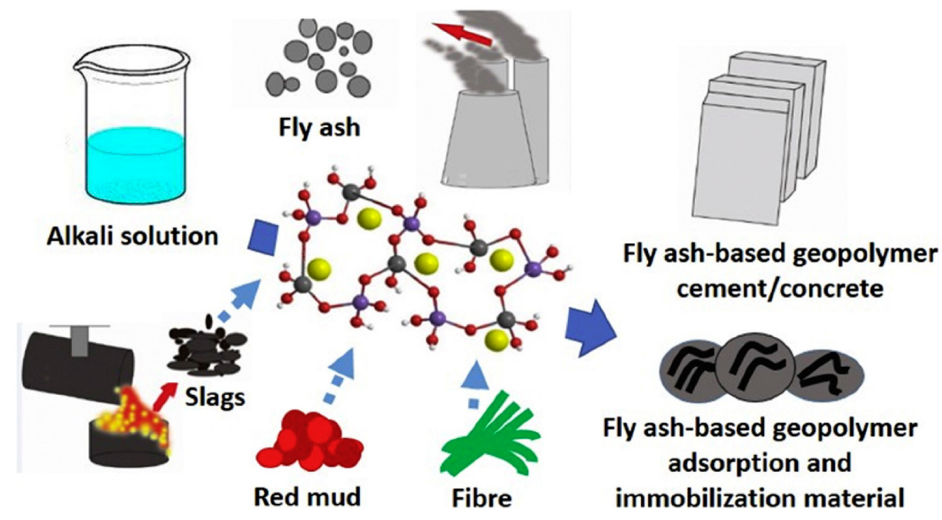 - The alkali activation process comprises three sequential stages: dissolution of raw materials under alkaline conditions, depolymerization into monomeric species, and polycondensation forming hardened inorganic gel matrices.