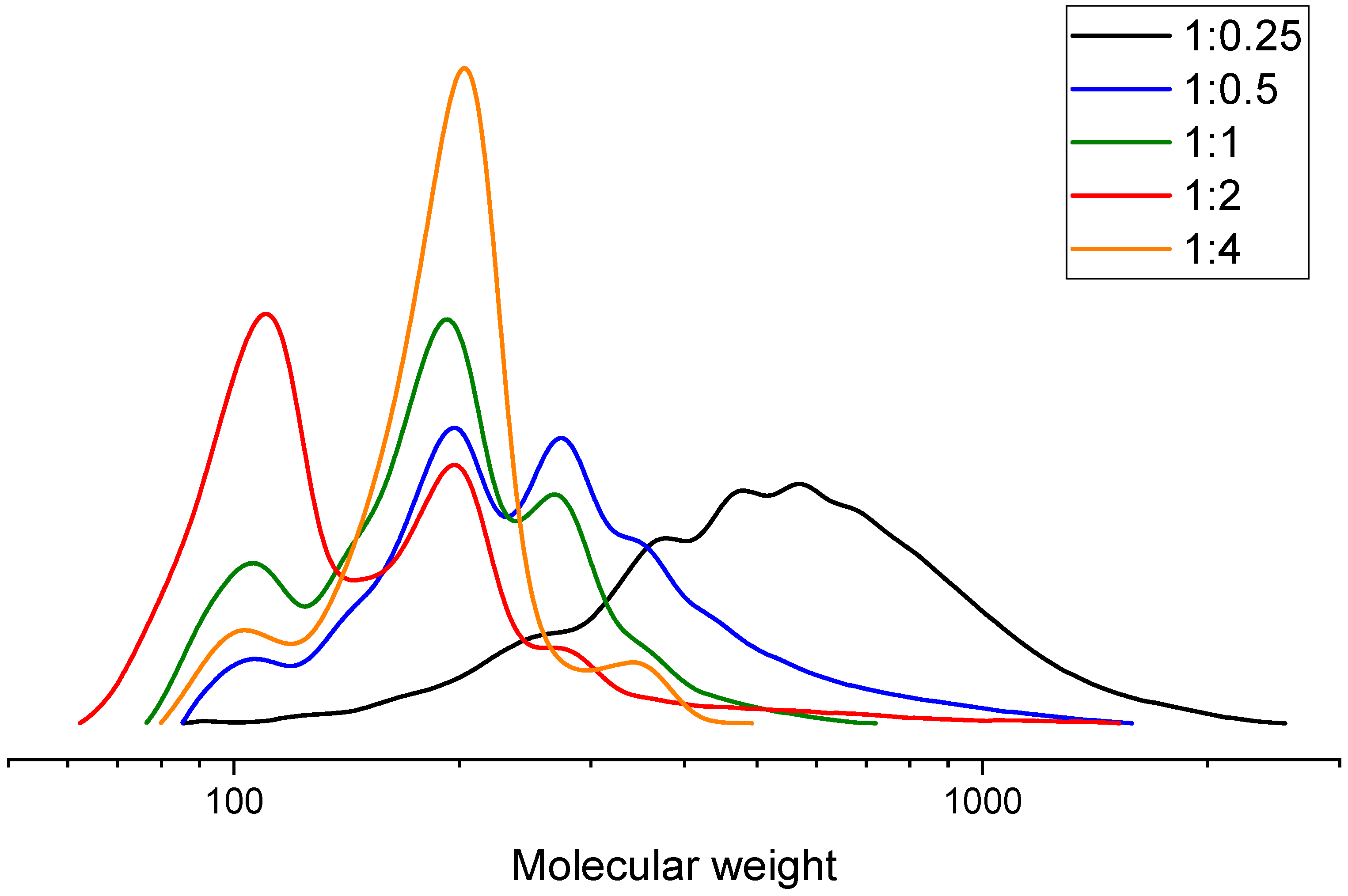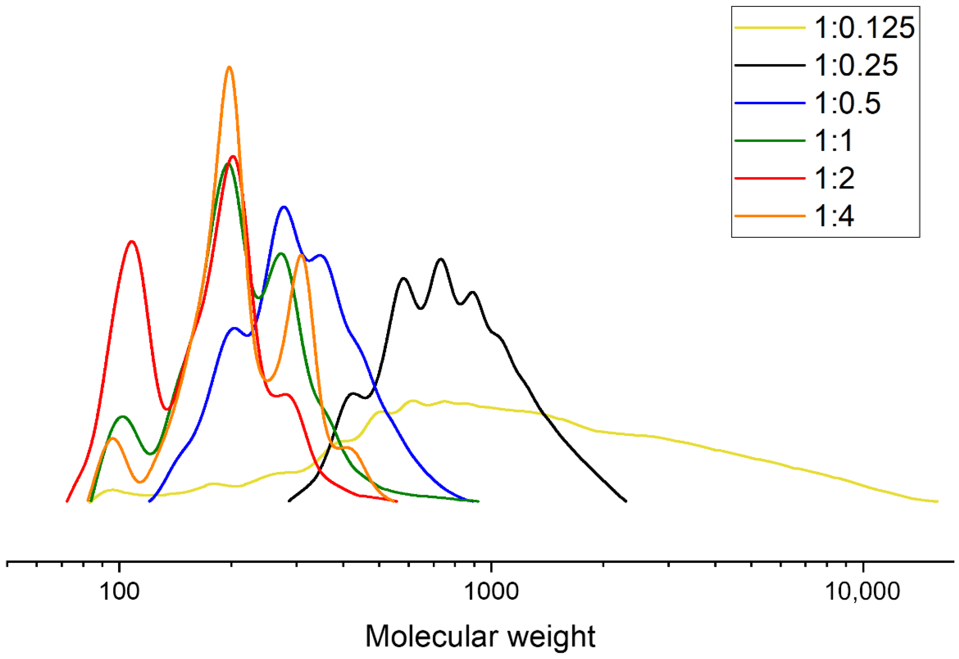 | 1 | Ethylene glycol | 1:0.25 | 180 | 550 | 690 |