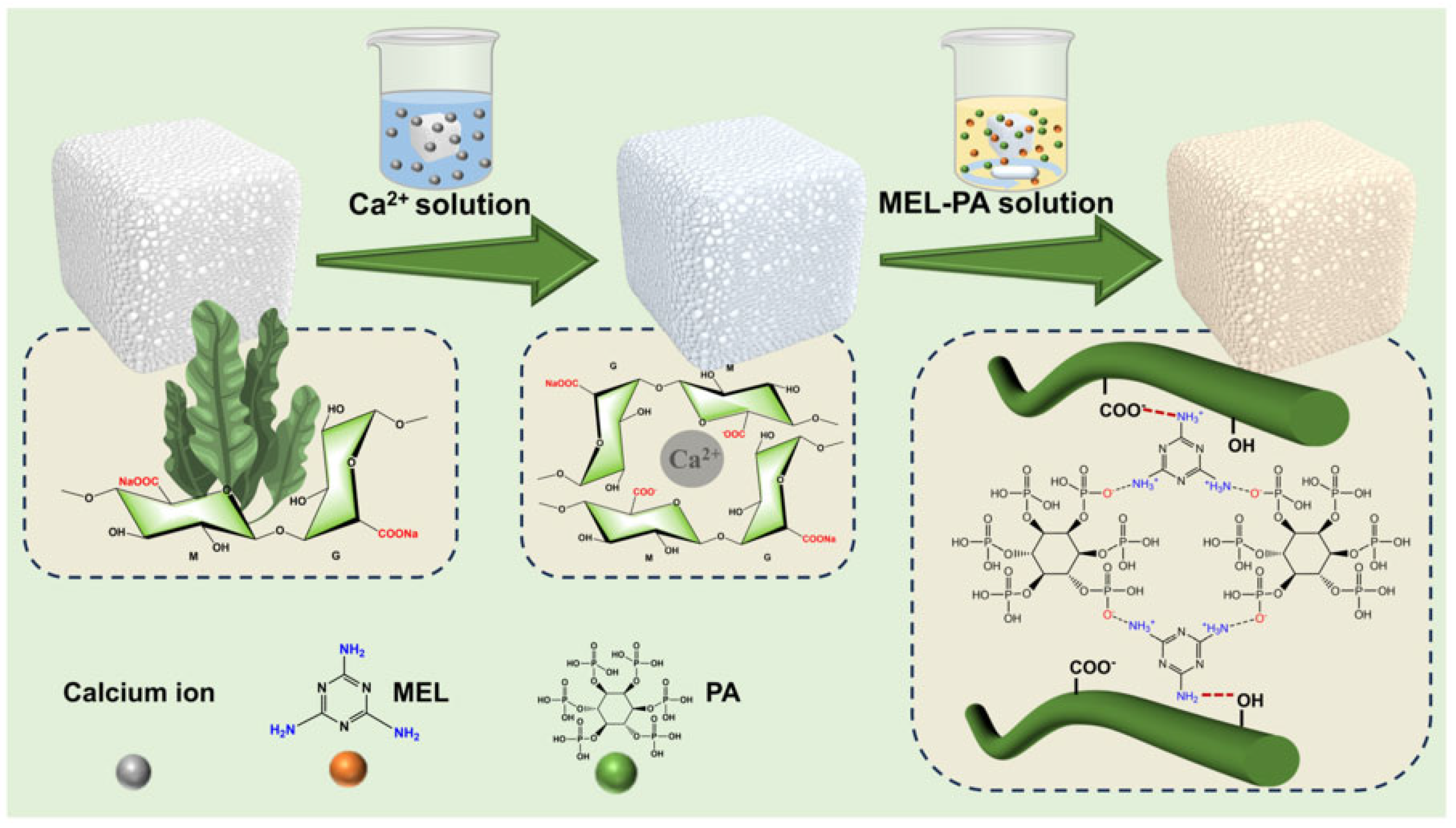 | Rigid polyurethane foam | Aerogel based on phytic acid and sodium alginate |