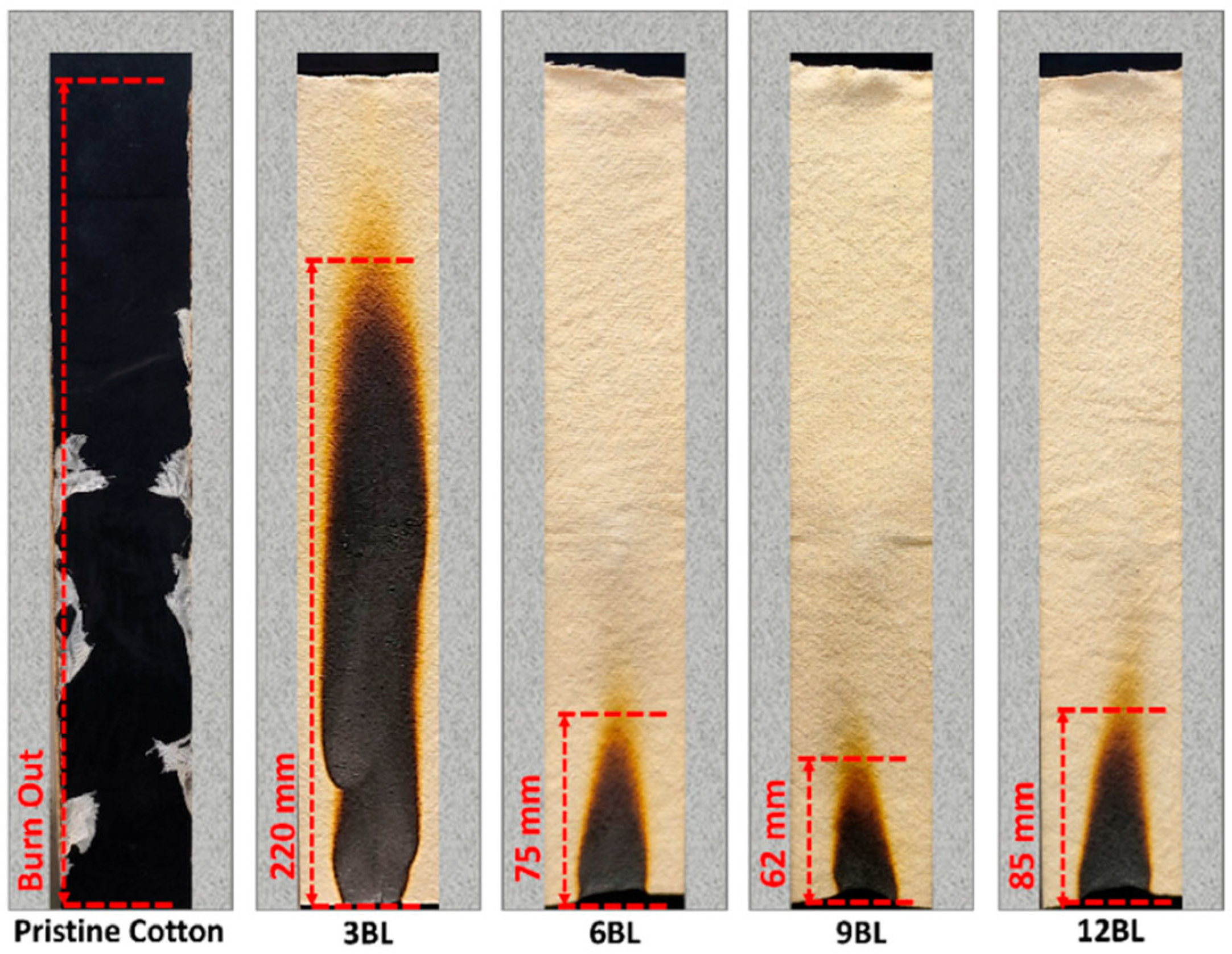 | Cotton fabric | Coating made of phosphite lysine and phytic acid |
