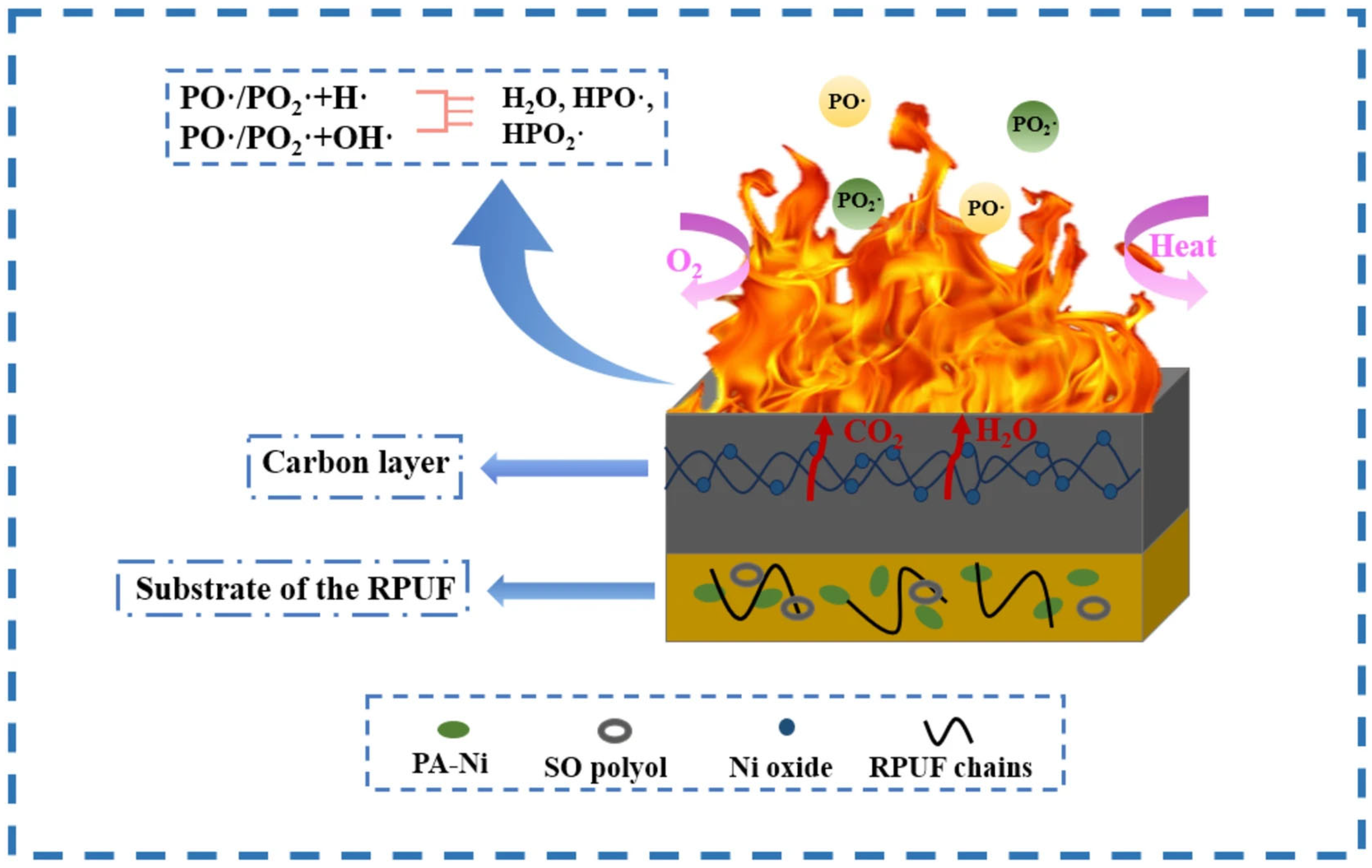 | Polyurethane foam | In situ immobilization of iron phenylphosphinate on the surface of phytic acid activated tung meal-based carbon |