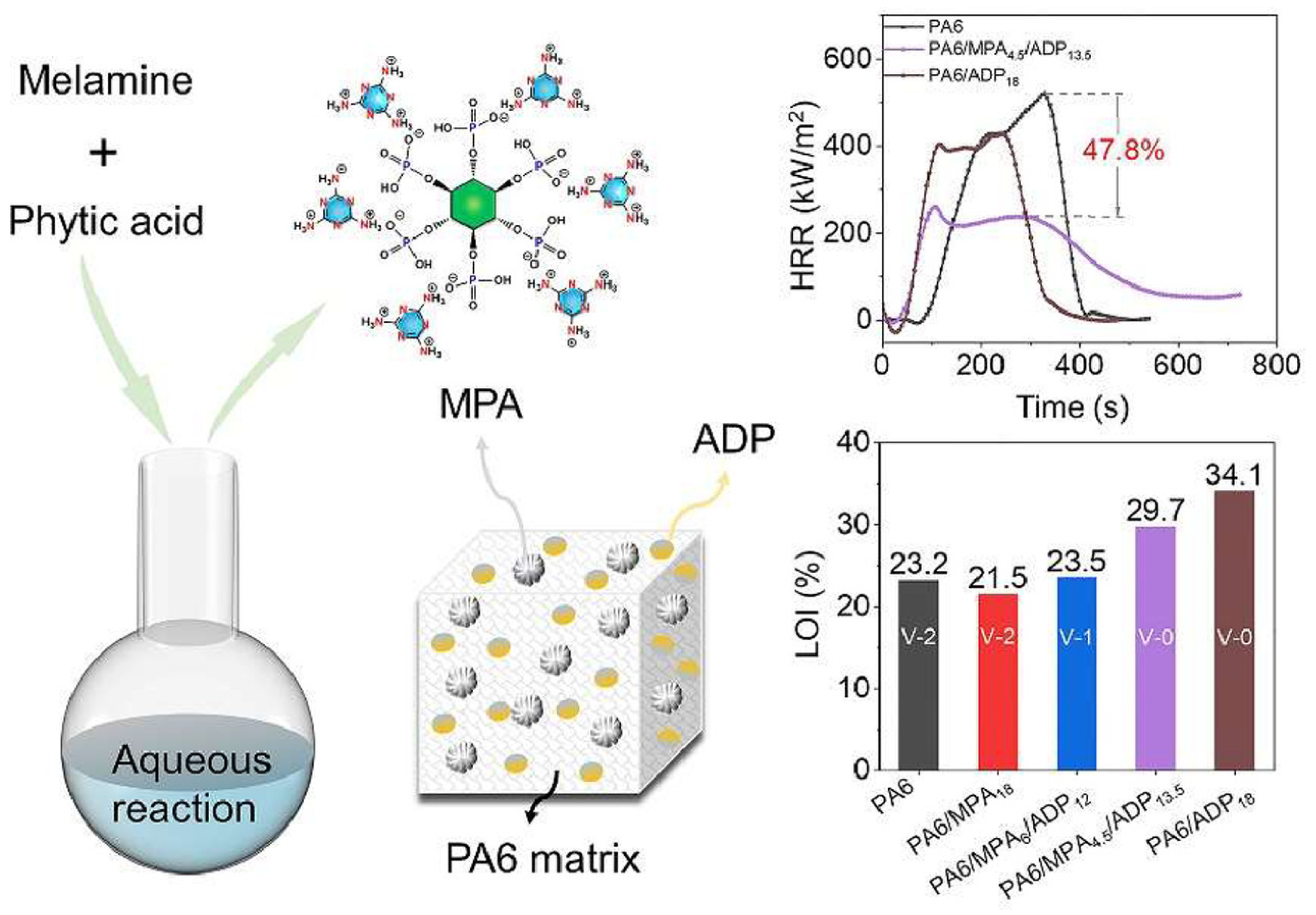 | Polyamide 6 | Melamine-phytate aggregate and aluminum diethylphosphinate |