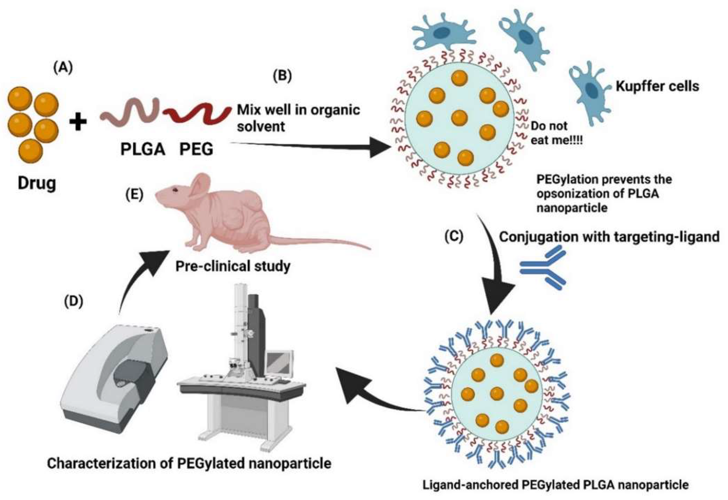 - Kesharwani, P.; Kumar, V.; Goh, K.W.; Gupta, G.; Alsayari, A.; Wahab, S.; Sahebkar, A. PEGylated PLGA nanoparticles: Unlocking advanced strategies for cancer therapy. Mol. Cancer 2025, 24, 205. [Google Scholar] [CrossRef]