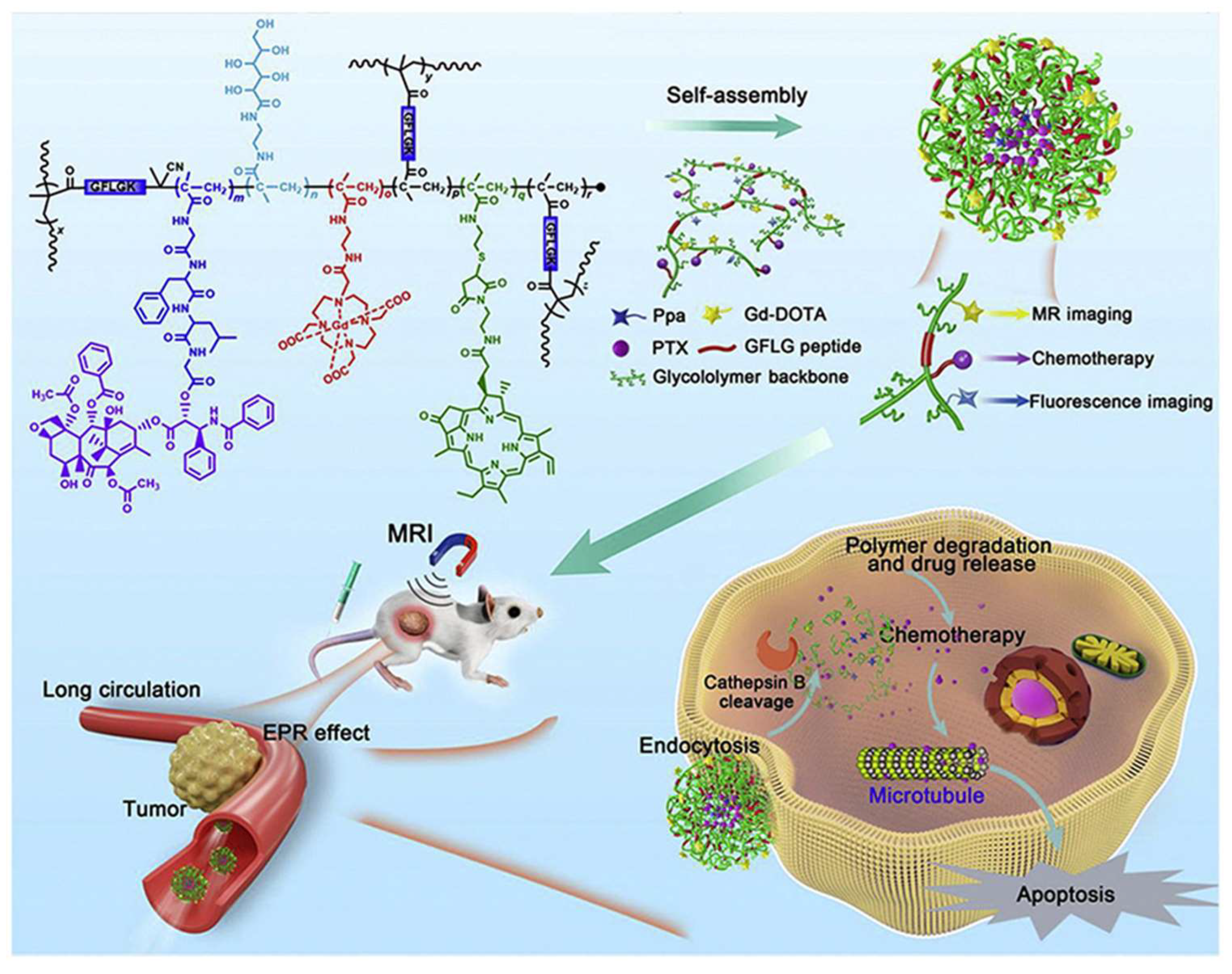 - Cai, H.; Xiang, Y.; Zeng, Y.; Li, Z.; Zheng, X.; Luo, Q.; Zhu, H.; Gong, Q.; Gu, Z.; Liu, Y.; et al. Cathepsin B-responsive and gadolinium-labeled branched glycopolymer-PTX conjugate-derived nanotheranostics for cancer treatment. Acta Pharm. Sin. B 2021, 11, 544–559. [Google Scholar] [CrossRef]