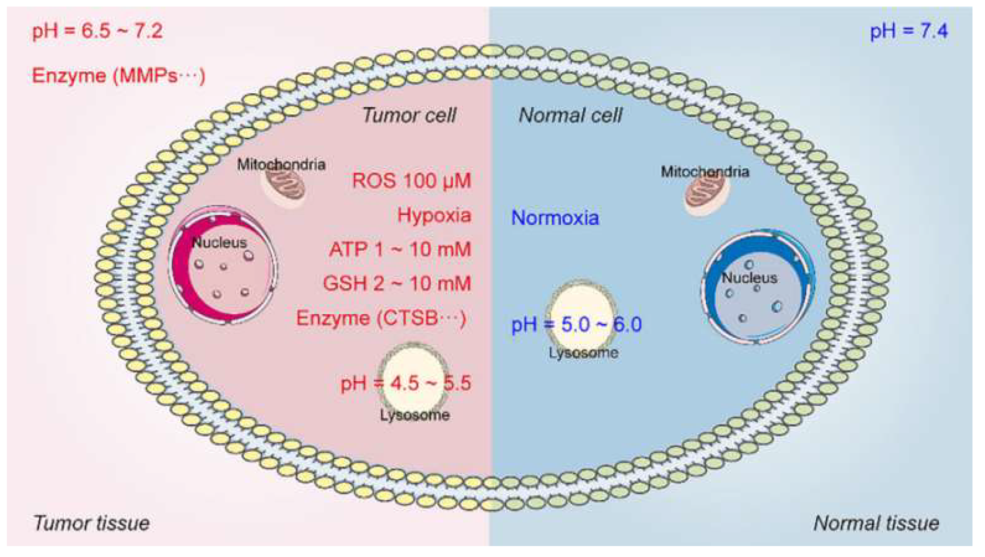 - Chu, S.; Shi, X.; Tian, Y.; Gao, F. pH-responsive polymer nanomaterials for tumor therapy. Front. Oncol. 2022, 12, 855019. [Google Scholar] [CrossRef] [PubMed]