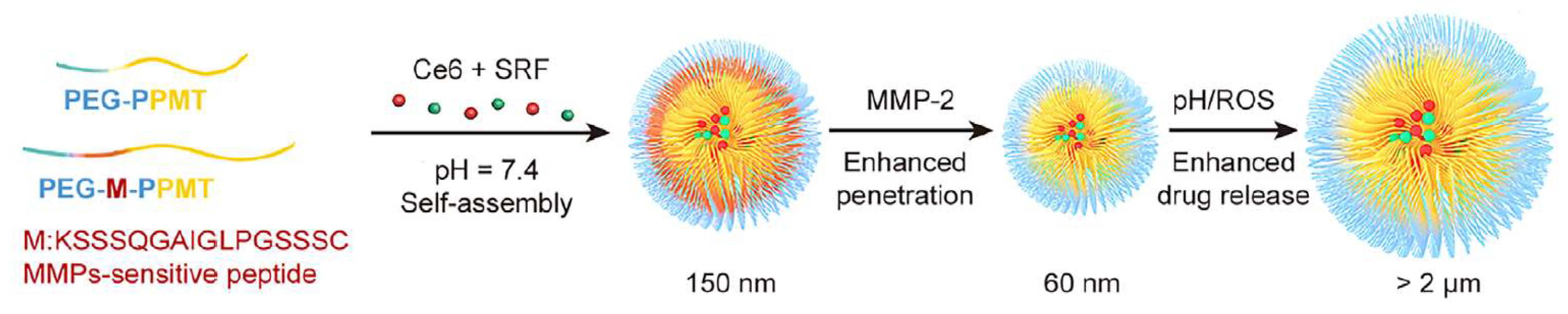 - Shu, M.; Tang, J.; Chen, L.; Zeng, Q.; Li, C.; Xiao, S.; Jiang, Z.; Liu, J. Tumor microenvironment triple-responsive nanoparticles enable enhanced tumor penetration and synergetic chemo-photodynamic therapy. Biomaterials 2021, 268, 120574. [Google Scholar] [CrossRef]