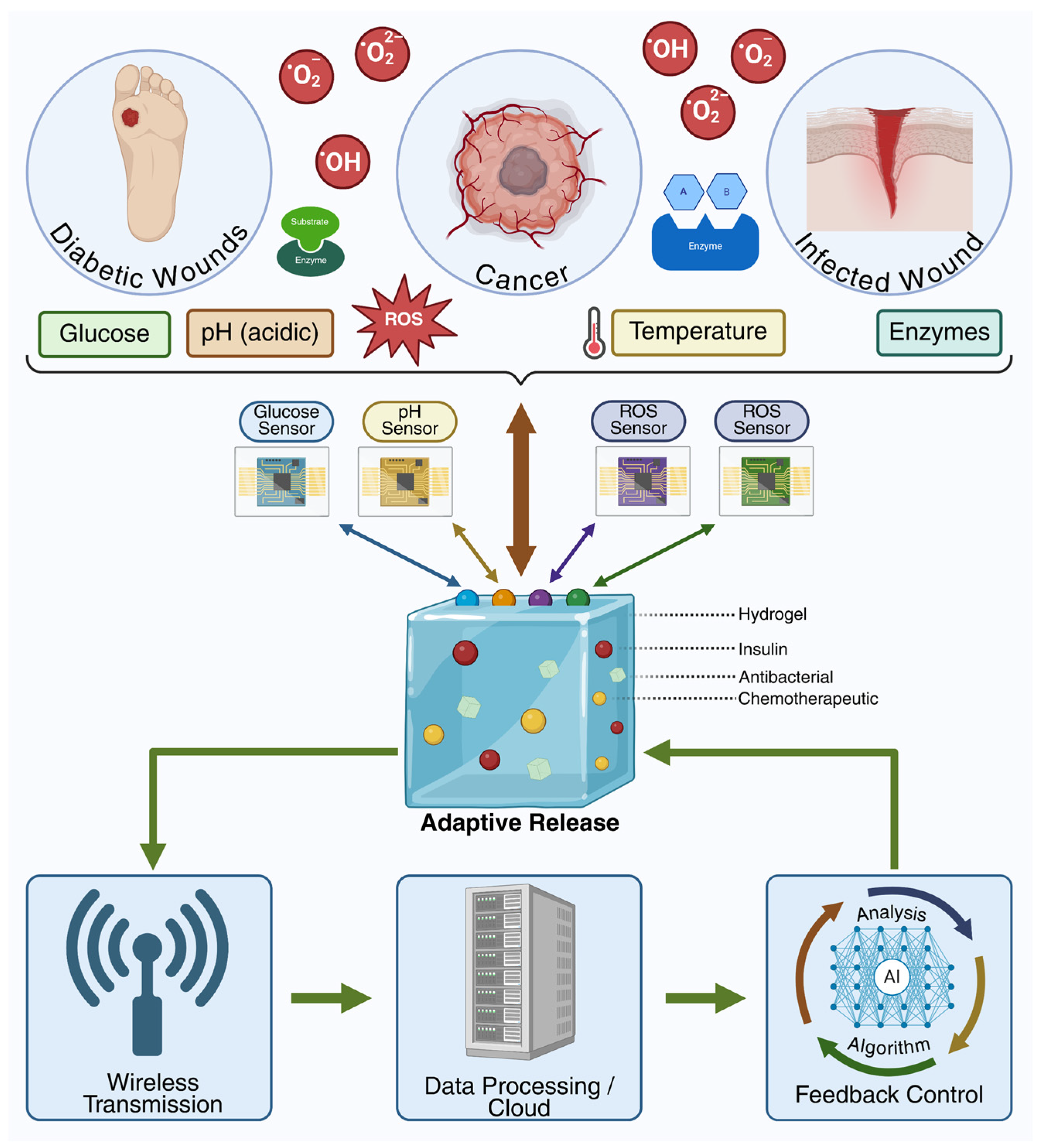6.1. Hydrogels with Integrated Biosensors for Early Diagnosis of the Pathological Microenvironment