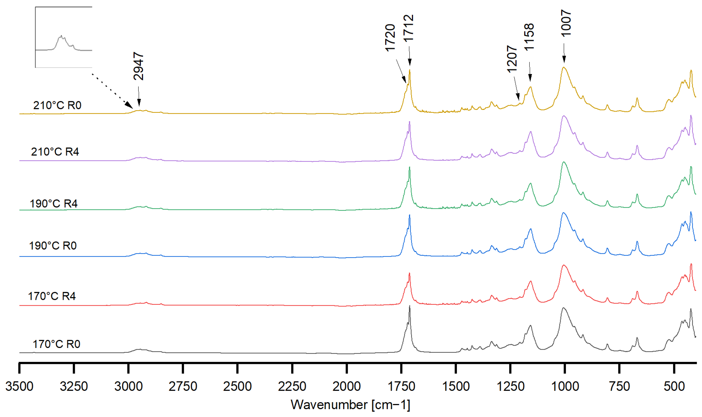 | 210 °C | R0 | 82.46 (0.44) | 86.78 (0.65) | 69.68 (0.28) | 92.24 (0.22) | 36.32 (1.07) |