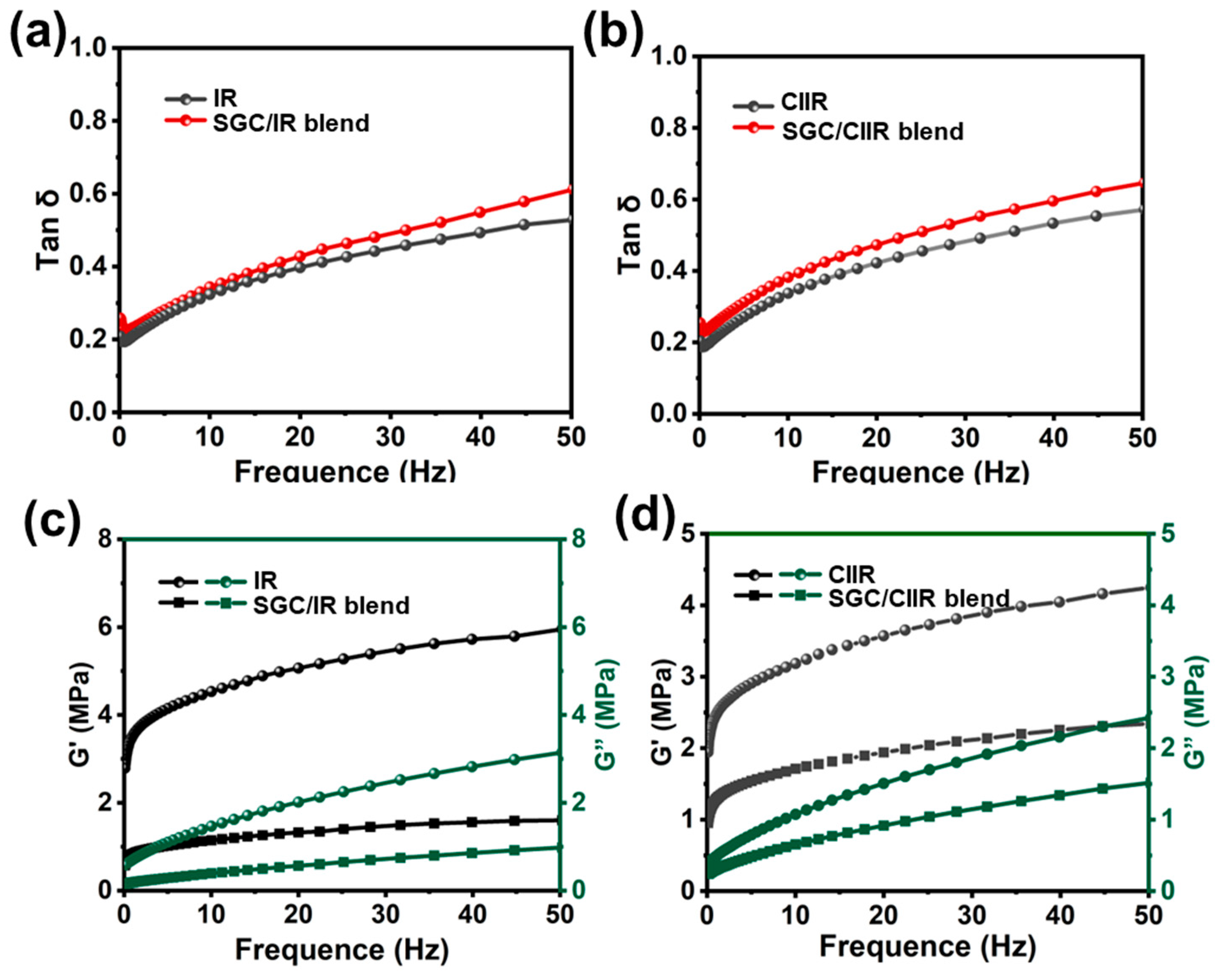 3.3. Damping Performance of SGC/Rubber Blends