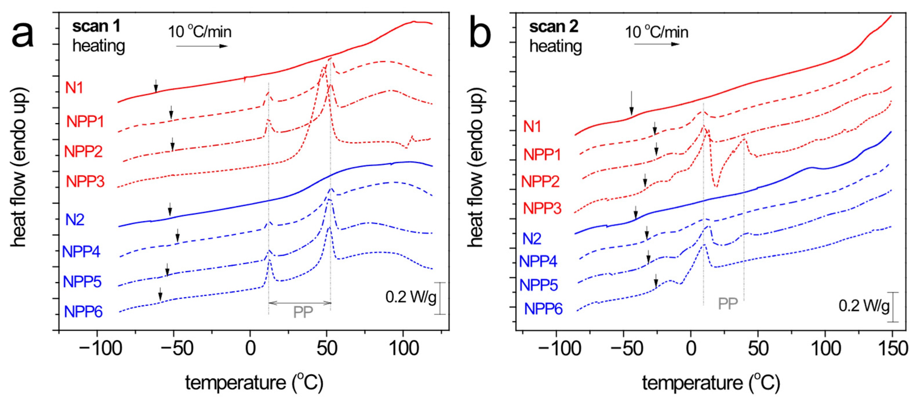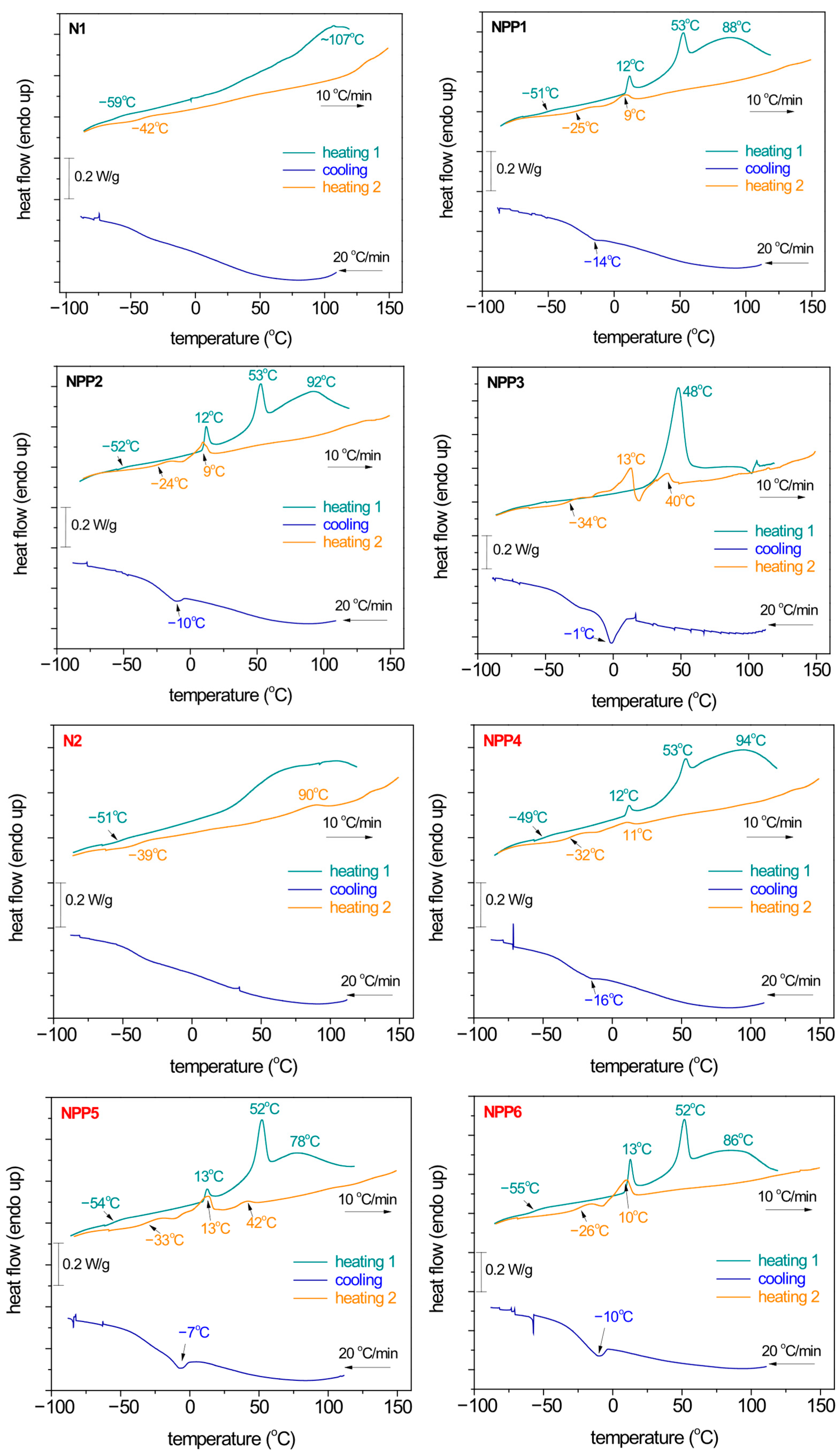 | Sample | 1st Heating Scan | Cooling | 2nd Heating Scan | ||