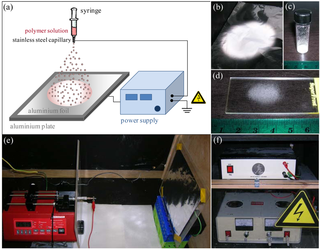 - Hao, X.F.; Lu, X.F.; Li, Z.Y.; Zhao, Y.Y.; Shang, T.C.; Yang, Q.B.; Wang, C.; Li, L.J. Effects of the electrospray ionization parameters on the formation and morphology of colloidal microspheres of polyacrylonitrile. J. Appl. Polym. Sci. 2006, 102, 2889–2893. [Google Scholar]