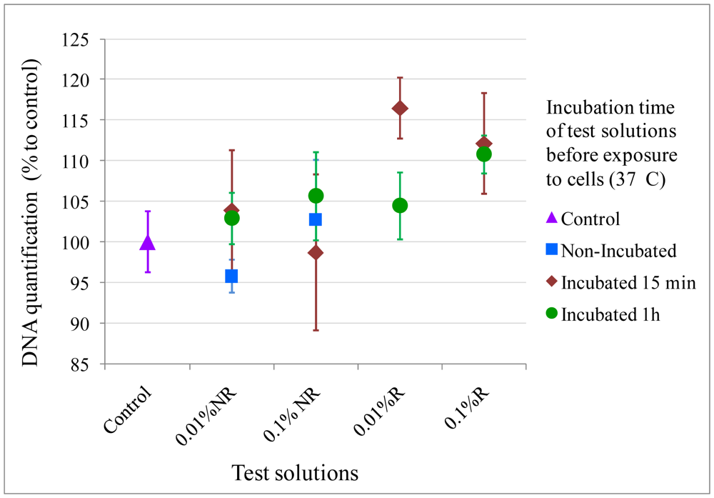 The CyQUANT® assay applied to toxicity determination only allows DNA quantification compared to a control. However in future studies, metabolic assays such as AlamarBlue or 3-(4,5-dimethylthiazol-2-yl)-2,5-diphenyl tetrazolium bromide (MTT) assays will give quantitative data regarding toxicity [42]. Subsequently, proliferative activity will be assessed with the CyQUANT® or PicoGreen assays ensuring that microspheres do not impair cell proliferation.