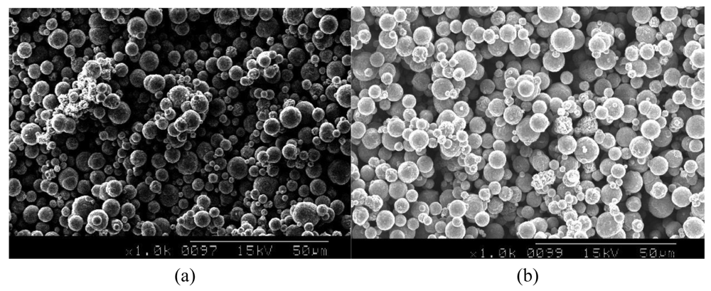 In order to remove the surface oxide layer, the nickel and copper particles were etched with 10% Hydrochloric acid (HCl) and 20% Phosphoric acid (H3PO4) respectively [47]. The particles were covered with the etching solution for 5 minutes with occasional mixing. The particles were then rinsed with distilled water and allowed to dry in an oven at 120 °C (see Figure 2(b)). As seen in Figure 2 with Ni powder, the etching procedure resulted in smoother particle surfaces, and thus, larger contact area between them to provide lower constriction resistance (see Equation 11).