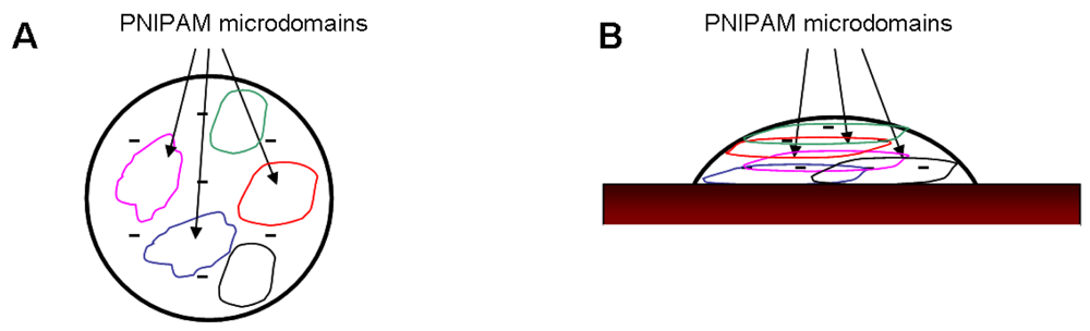 - Burmistrova, A.; von Klitzing, R. Control of number density and swelling/shrinking behavior of P(NIPAM-AAc) particles at solid surface. J. Mater. Chem. 2010, 20, 3502–3507. [Google Scholar]