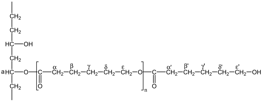 Poly(ethylene-co-vinyl alcohol) (EVOH) and poly-ε-caprolactone (PCL) are two polymers with different biodegradability. EVOH is a non-biodegradable copolymer while PCL is biodegradable polyester. Grafting PCL on EVOH or other non-biodegradable polymers associates mechanical properties of a non-biodegradable backbone to the biodegradability of grafts [10-15]. Poly-ε-caprolactone has been grafted from poly(alkyl methacrylate) or poly(ethylene-co-vinyl alcohol) [10-14,16].