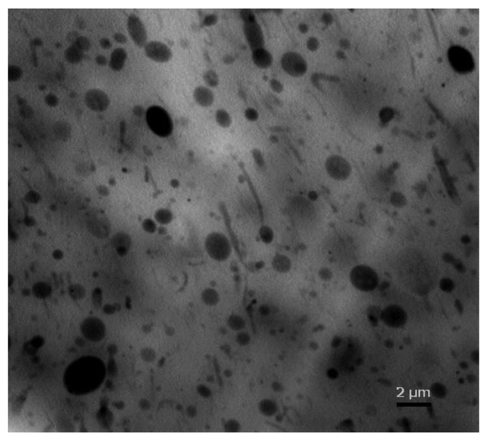 Ultrathin sections (ca. 30 nm thick) were microtomed from the extrudates at room temperature with a diamond knife and collected on copper grids. Poly-ε-caprolcatone was then selectively stained with osmium tetroxyde (OsO4) during 15 min at room temperature. Imaging was done on a HITACHI H800-3 microscope.