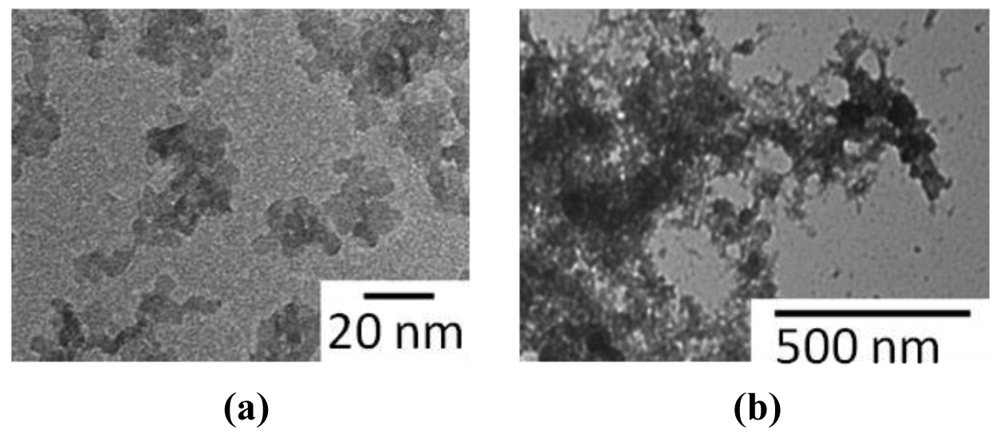 Average agglomerate diameters as determined by dynamic light scattering for the particles synthesized at the various pH are listed in Table 3. TEM image illustrated in Figure 9 validate the diameter size difference between nanoparticles synthesis at a pH of 3 as compared to a pH of 8.