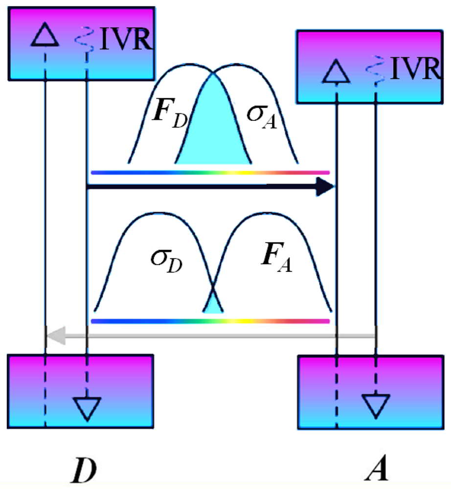 To understand more of the specific properties that will expedite RET, we first need to consider the mechanistic details of pair-wise energy transfer between an excited donor D* and A, an acceptor; A becomes excited on acquisition of the energy lost in the decay of D*: