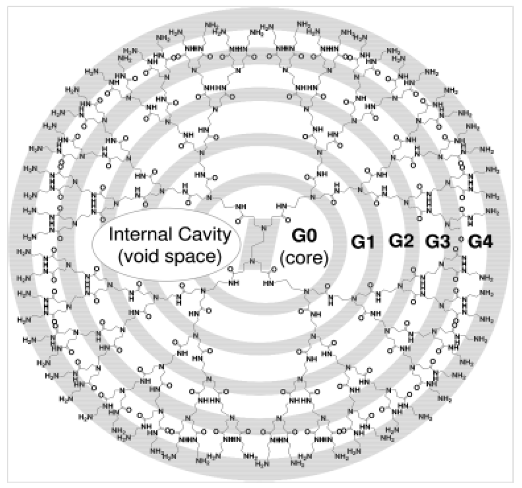 - Gohel, M.C.; Parikh, R.K.; Bariya, S.H.; Nagori, S.A.; Gandhi, A.; Patel, V.; Patel, T.; Pandya, R.; Kharadi, S.; Patel, P.; et al. Dendrimer: An overview. Pharm. Rev. Target. Drug Deliv. Syst. 2009, 7. Available online: http://www.pharmainfo.net/reviews/dendrimer-overview (accessed on 21 February 2012).