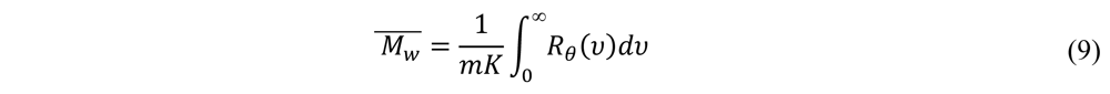Here Rθ(υ) is excess Rayleigh scattering at retention volume υ, K is an optical constant, and m is the total mass of sample [46].