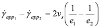 . In this scheme, the sliding process is outlined by a no-zero velocity νs with respect to the walls (Figure 5 (a)). The sliding velocity, νs can be extracted from the values at the same shear stress of the shear rates measured at two different thicknesses following the relationship: