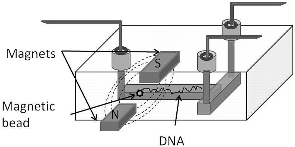 Since the flow is dependent on the interaction between the micro channel walls and the driving fluid, a higher efficiency of fluid flow is obtained when the micro channels are less than 100 μm in diameter [33]. This method has been used with different microfluidic devices fabricated from different materials such as glass [35], polymers [36,37] and PDMS (polydimethylsiloxane) [38]. The method is used widely in capillary electrophoresis [39]. However, this method is not qualified for some electrophysiological investigations due to the noise arising from electromagnetic fields [40].