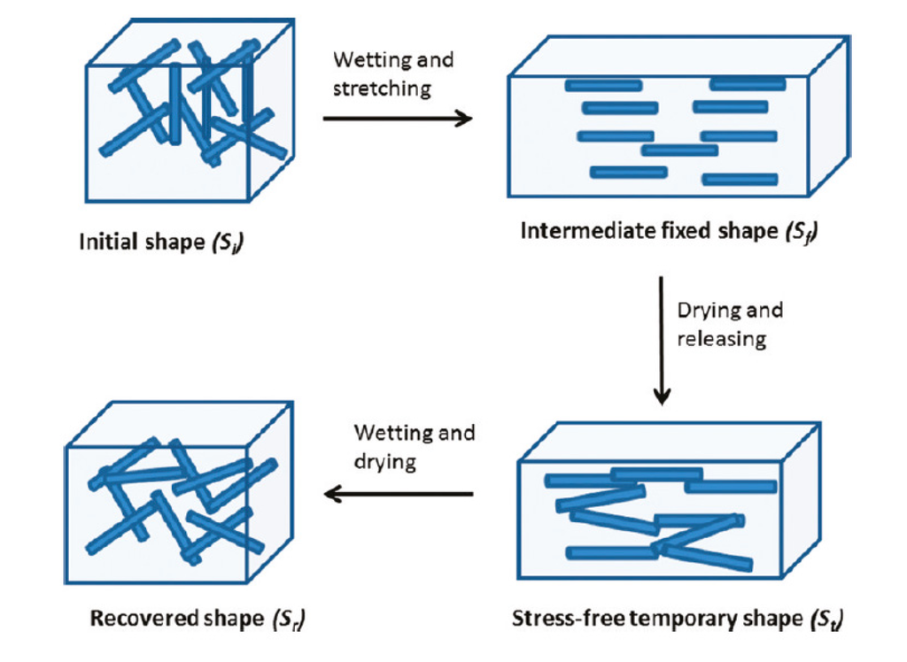 - Mendez, J.; Annamalai, P.K.; Eichhorn, S.J.; Rusli, R.; Rowan, S.J.; Foster, E.J.; Weder, C. Bioinspired mechanically adaptive polymer nanocomposites with water-activated shape-memory effect. Macromolecules 2011, 44, 6827–6835. [Google Scholar] [CrossRef]