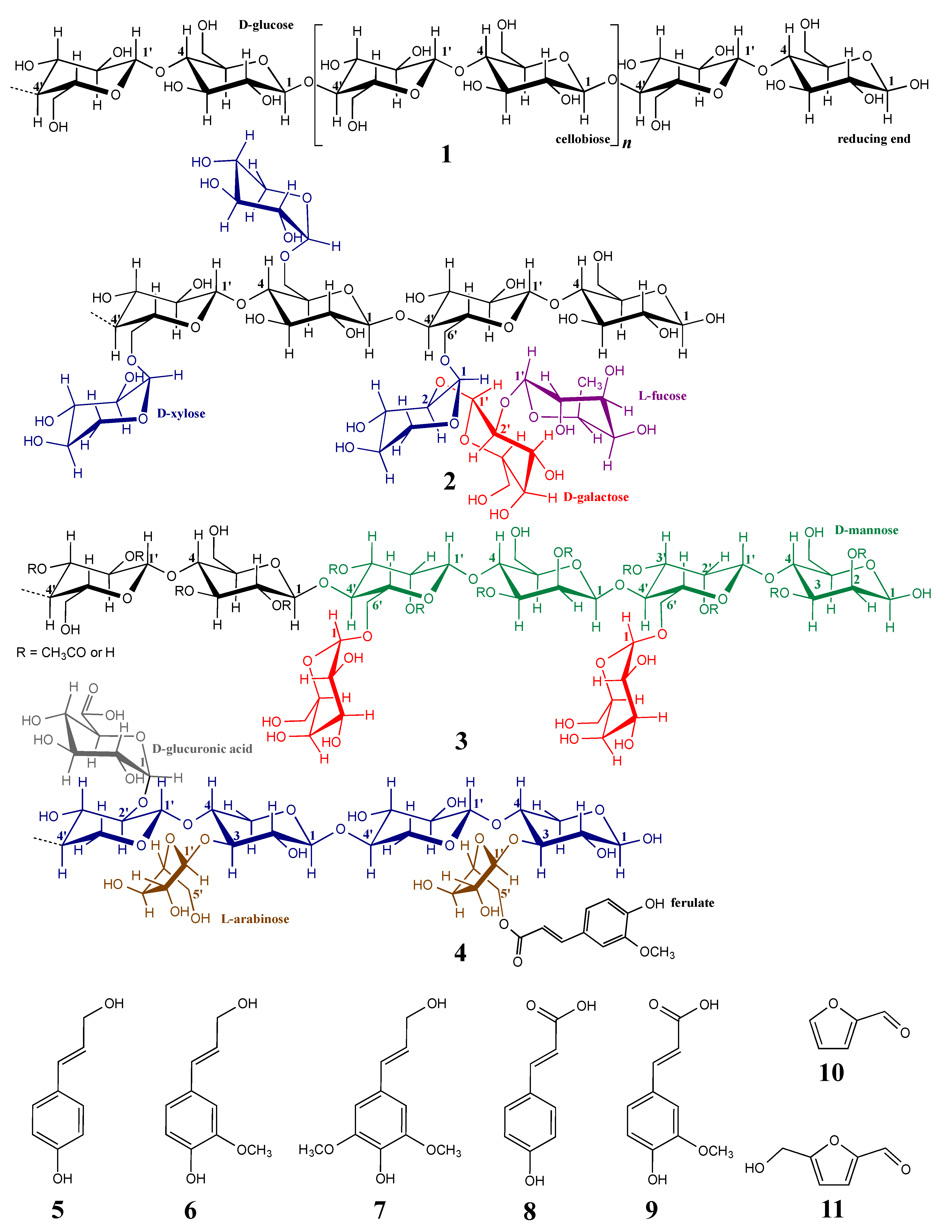 1.2. Lignocellulosic Biomass Consists of Different Cell Wall Polymers