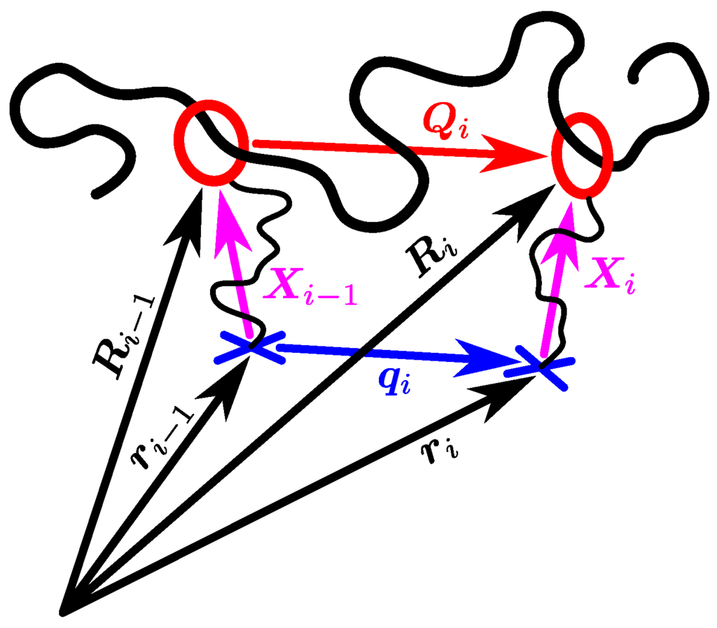 where and are the end-to-end vectors of the strand and the virtual springs, as shown in Figure 1, and is the shape tensor of the potentials describing the cross-link fluctuations (or the compliance tensor of the virtual springs).