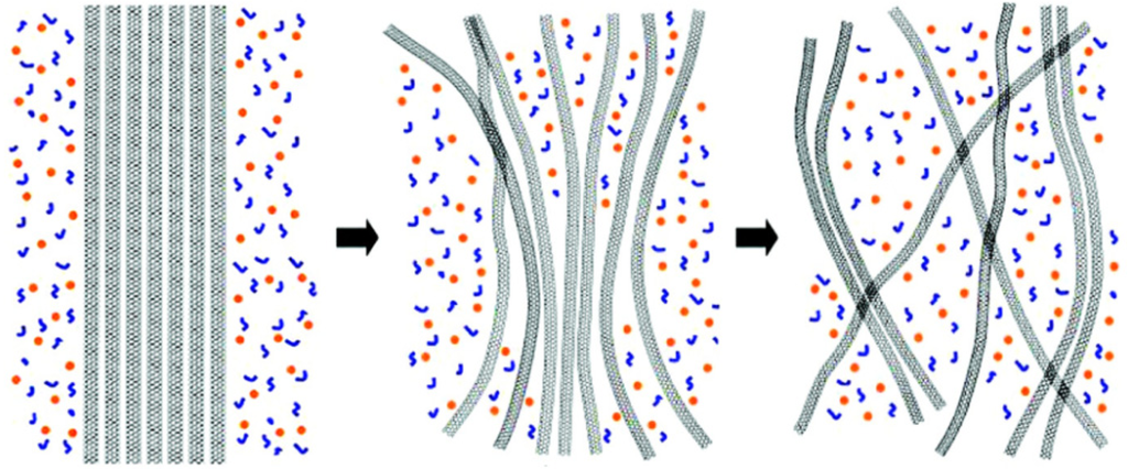 Schematic of the dispersion process for carbon nanotubes (CNTs) in Imi-ILs.Reproduced with permission from [76]. Copyright 2008 the American Chemical Society.