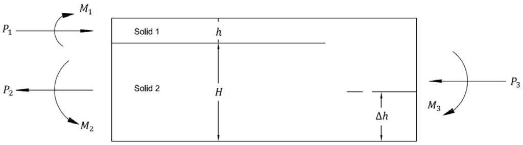 Hutchinson and Suo [8] conducted a similar research to Williams [7] to identify the partitioned fracture energy of a MMB asymmetric bilayer (meaning two layers of dissimilar materials in the cross-section) specimen. The theory used for the derivation of the Local Method focused on the crack tip stress field in the area of the crack propagation in order to obtain values for the partitioned stress intensity factors (KI and KII), which are then used to calculate the partitioned fracture energy values. A summary of the derivation and the resulting relationship is provided in this section. For reference to the some of the components described in the derivation, a diagram is provided in Figure 6.