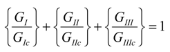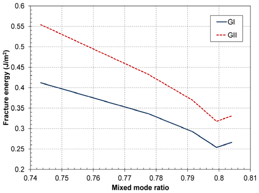 | Critical partitioned fracture energy ratio (GIC/GIIC) | 0.33 | |