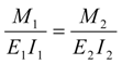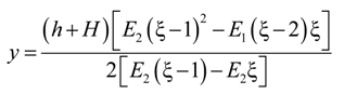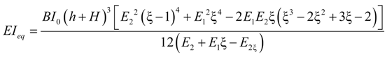 The equivalent flexural stiffness, EIeq, can be calculated by transforming the composite section into an equivalent section composed of solely Material 1 in both the upper and lower arm, with an equivalent neutral axis, y, where:
